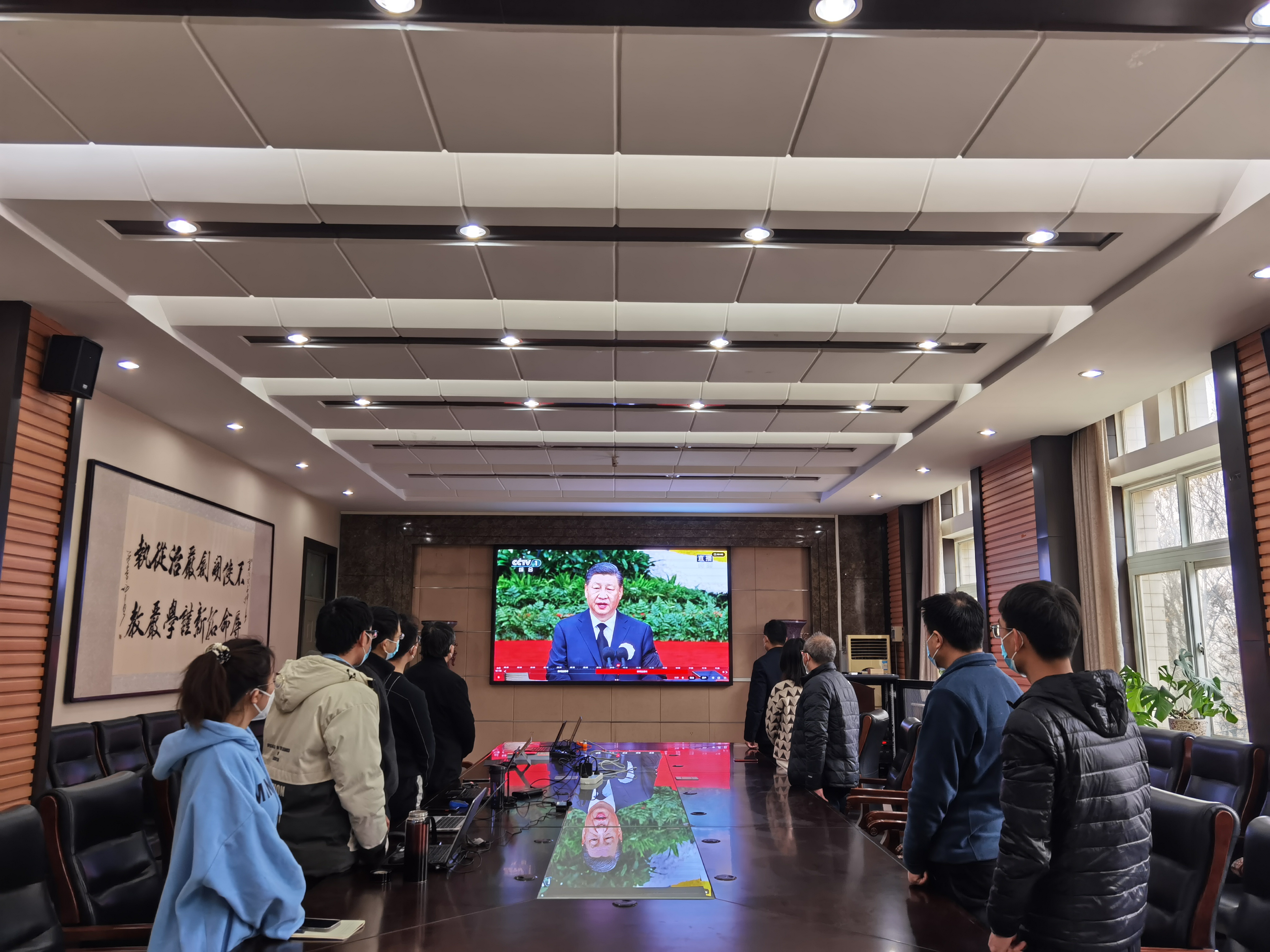 师生以线上线下结合的方式收听收看追悼大会,学院院长张庆辉、副院长秦瑶和留校值班教师在6225会议室集中收看追悼大会直播,沉痛悼念江泽民同志。