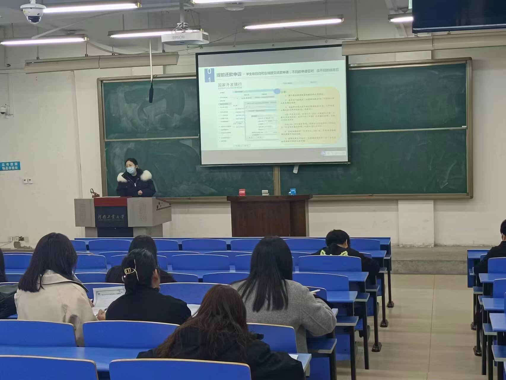 会议伊始,首先王璐老师详细地介绍了贷款毕业生确认申请的流程、个人信息更新维护的方法、提前还贷的方式以及支付宝助学贷款还贷的操作方法等贷款毕业生相关工作的事项。随后,王璐老师介绍了关于高校贷款的政策,以及借贷人应承担的责任,强调了诚信还贷对毕业生个人未来发展的重要性以及不良征信带来的危害,希望同学们用实际行动来遵守贷款承诺,按时还款。最后,王璐老师与贷款毕业生进行了面对面地答疑解惑,同学们对国家助学贷款的帮助表示感恩,并表示要怀有感恩之心,服务社会,奉献社会。