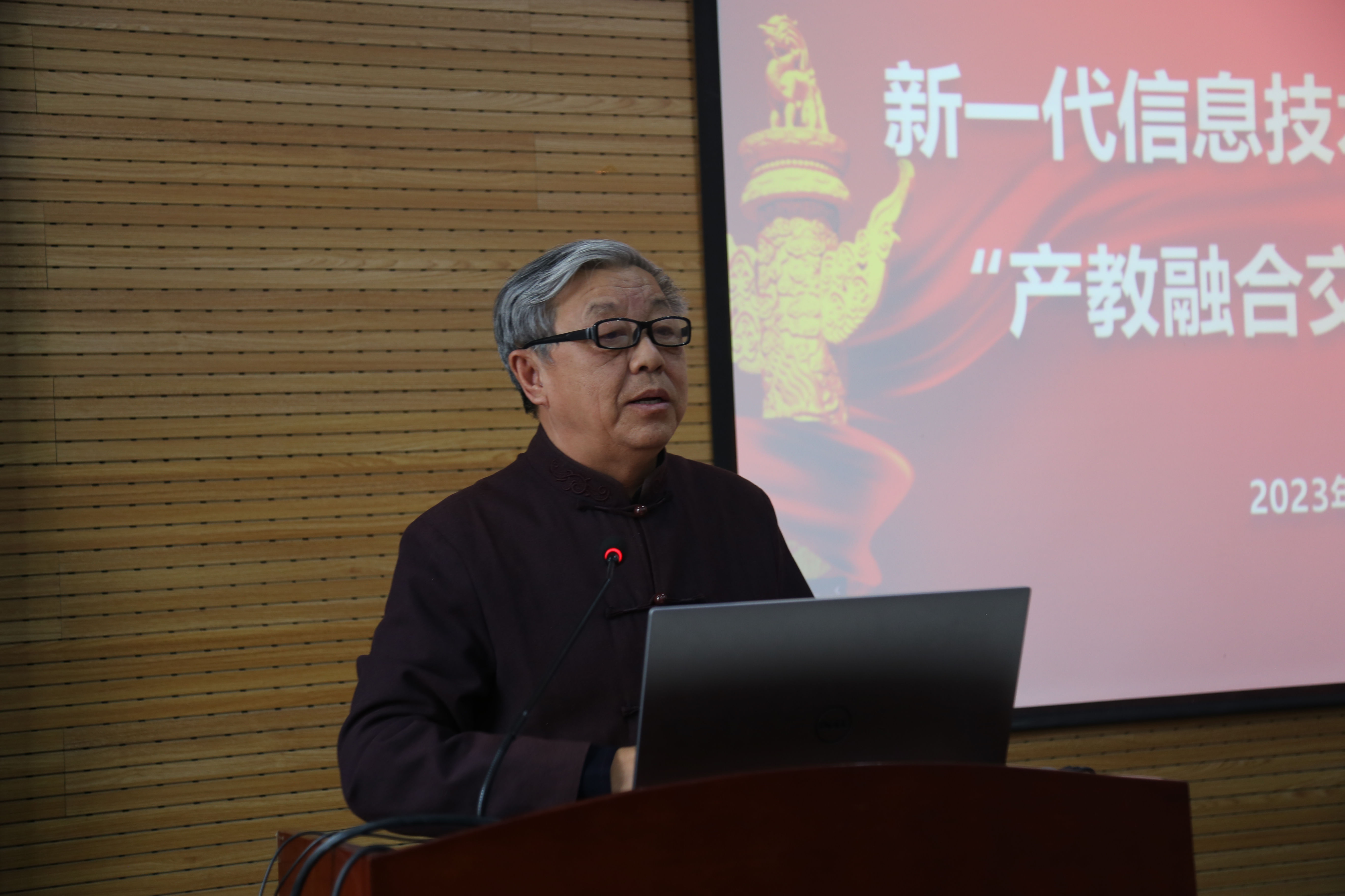 河南科城数字科技有限公司总经理田海玉做了《科诚数科校企合作项目介绍》的主题报告。田总经理从行业背景、校企合作业务及合作方式等方面详细介绍了公司的产教融合业务。特别是介绍了公司联合腾讯、海尔、新华三等知名公司构建产业学院实现“产、学、研、训、创”五位一体的产教融合人才培养模式。河南新兰德教育科技集团有限公司董事长牛前进在会上发表了《从“工科理科化”谈产业学院建设》主旨演讲。牛董事长基于“工科理科化”理念,面向新时代具有科学素养卓越工程师的培养目标,分享了公司探索构建的“政府+学校+协会+新兰德集团+社会资本”为汽车行业、新一代信息技术行业输送定向人才的产教融合新模式。两位主讲嘉宾的精彩报告引起了线上线下与会人员的强烈反响和共鸣。