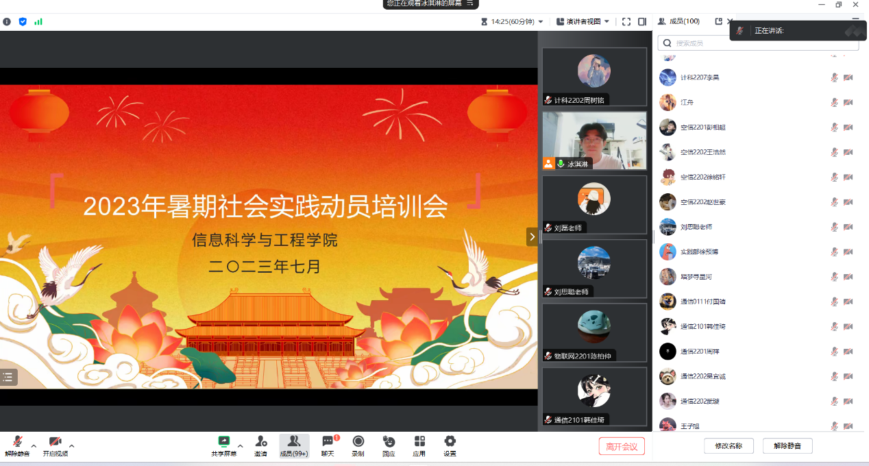 举行了线上暑假社会实践动员会,学院团委书记刘磊、学工办副主任崔莉莎、全体辅导员老师、团委学生会实践部成员以及各实践团队队长参会。会议由学生会实践部部长韩仲阳主持。