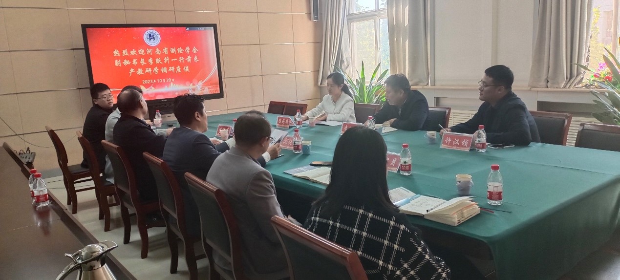 与地理信息行业产教研学深度融合,搭建校企合作交流平台,提高人才培养能力,促进学生更充分、更高质量就业,河南省测绘学会副秘书长李跃升一行3人于10月20日到我校开展校企合作交流。学院党委书记郭晓旻在座谈会中会见李跃升一行,副院长傅洪亮、刘宏月、院学工部、空间信息与数字技术系教师代表参加座谈。