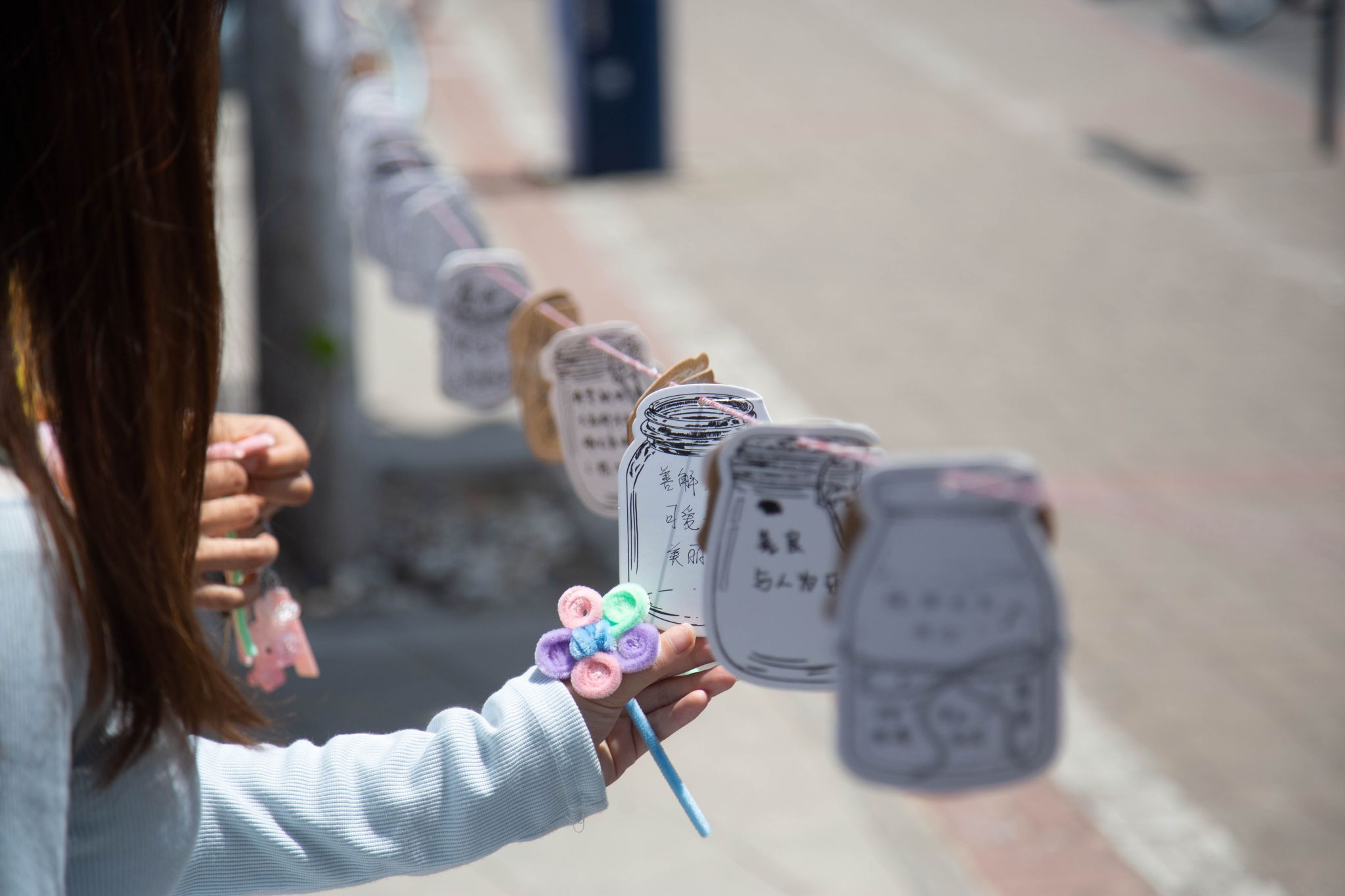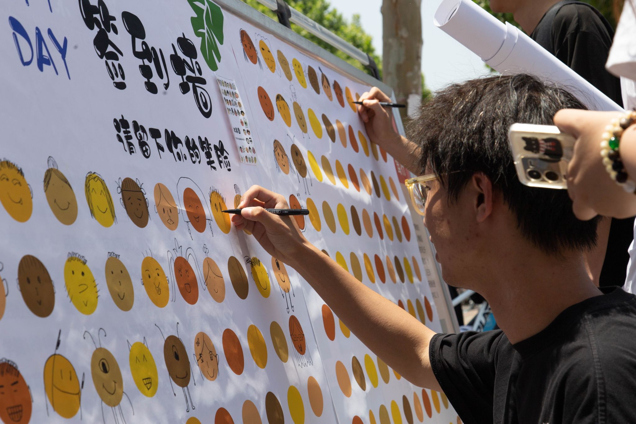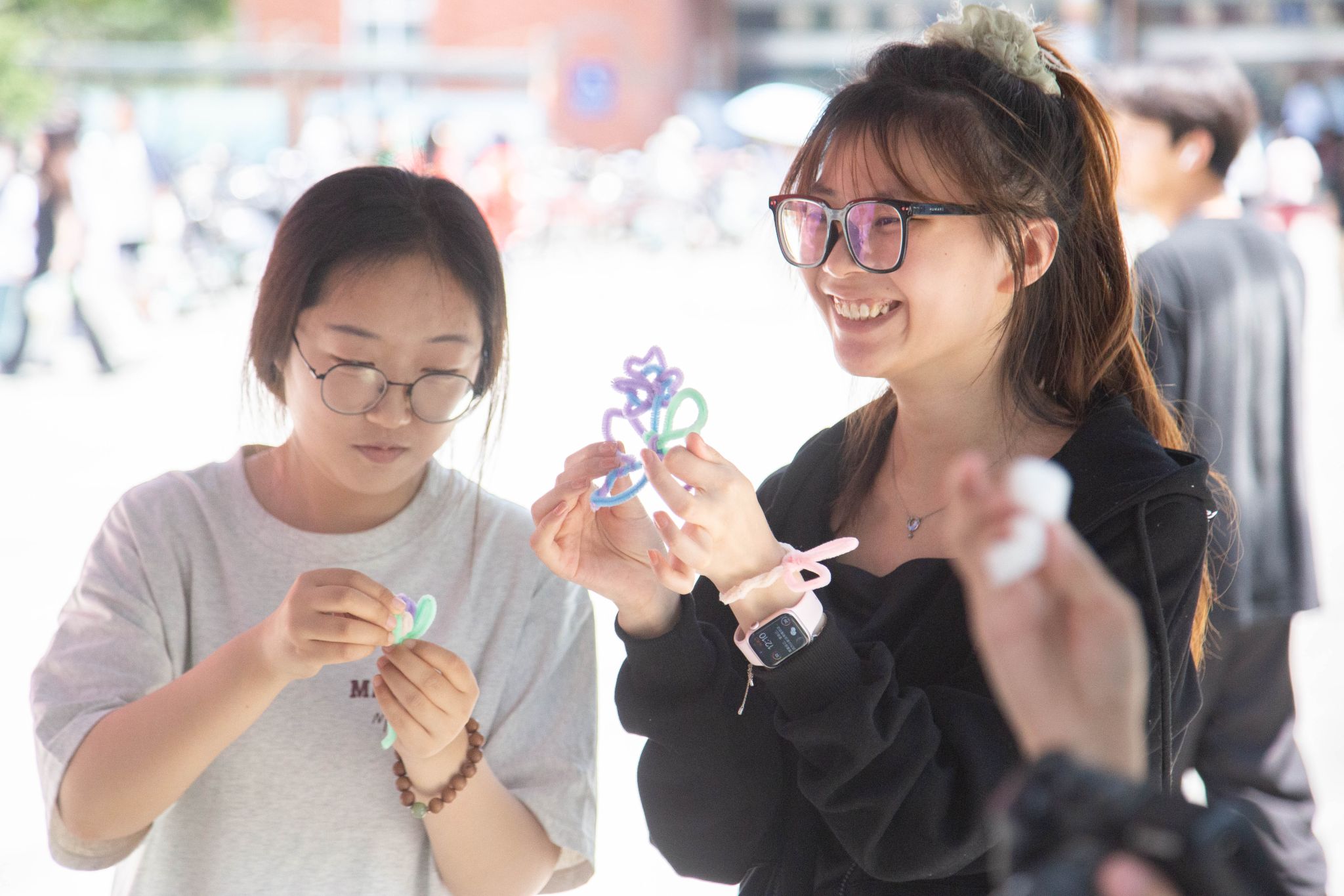 活动设有以“心海波动,思绪万千”为主题的扭扭棒创意工坊、心灵树语分享墙,笑脸绘出温暖,放飞梦想风筝活动,趣味套圈挑战赛等活动。活动期间,同学们都热情满满,积极参与,在活动中忘却烦恼、愉悦身心,现场充满了创新的火花和欢乐的氛围。扭扭棒创意工坊,鼓励同学们自由发挥想象力,创造出独特的艺术作品,从栩栩如生的花朵到灵动的蝴蝶,再到精致的戒指,每一件作品都展现了工大学子的巧思与匠心;心灵树语分享墙鼓励同学们在便签上写下自己的优点、对未来的期许或是对自我成长的寄语,并将便签悬挂在两颗象征着成长与希望的树之间传递正能量;在笑脸绘出温暖活动中,同学们用画笔在大型画布上绘制出一个个灿烂的笑脸,洋溢着青春的气息。放飞风筝活动让同学们在风筝上签上自己的名字并放飞,如同放飞同学们心中的梦想与期盼;趣味套圈挑战赛给同学们提供了精美的奖品,同学们套住了欢乐,套住了幸福。