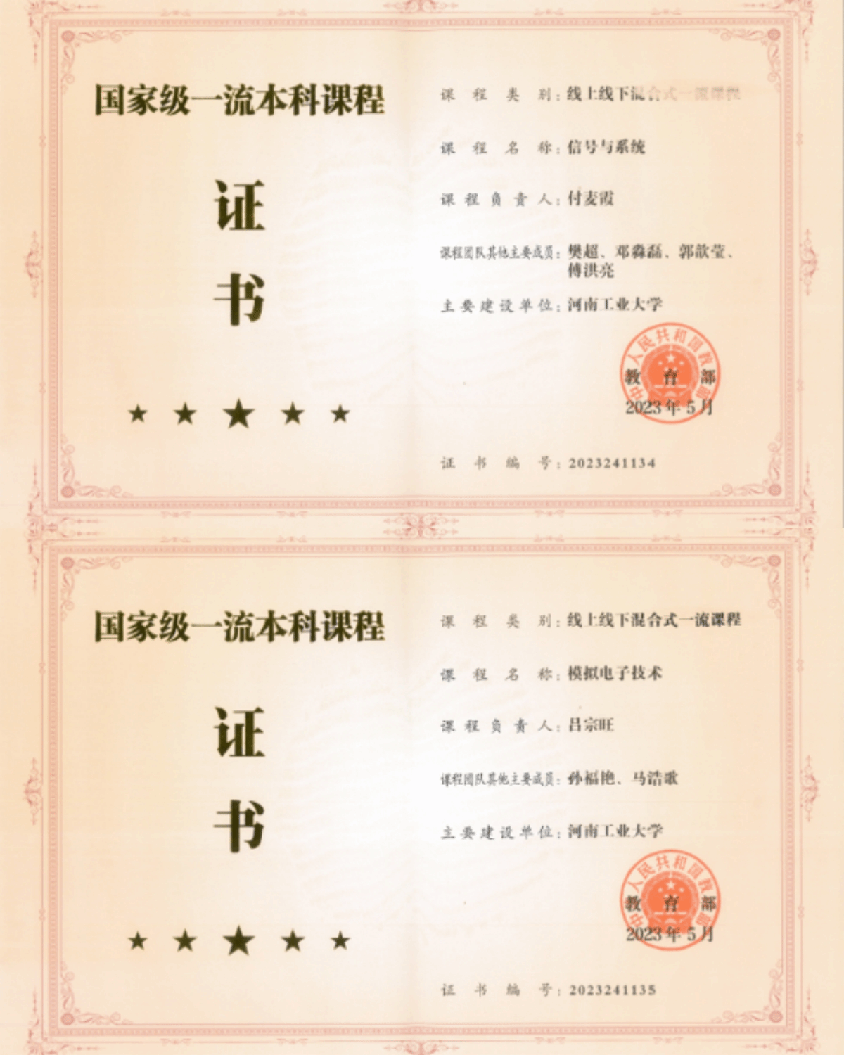 践行初心使命,铸魂育人显成效。五年来,学院坚决落实立德树人根本任务,积极构建“大思政”育人格局,结合专业教育扎实推进课程思政建设。学院获批国家级一流课程2门、省级一流课程10门,省级课程思政项目3项,省“十四五”规划教材3部,各类省级教研教改项目20余项。在2023年河南省本科专业评价中2个专业获评B等,数量和层次位居全省前列。在校学生获挑战杯、“互联网+”等国家级奖励4项、省级奖励20余项,其他各类国家级、省级和行业协会竞赛获奖300余项,参与发表论文、获得授权发明专利百余项。