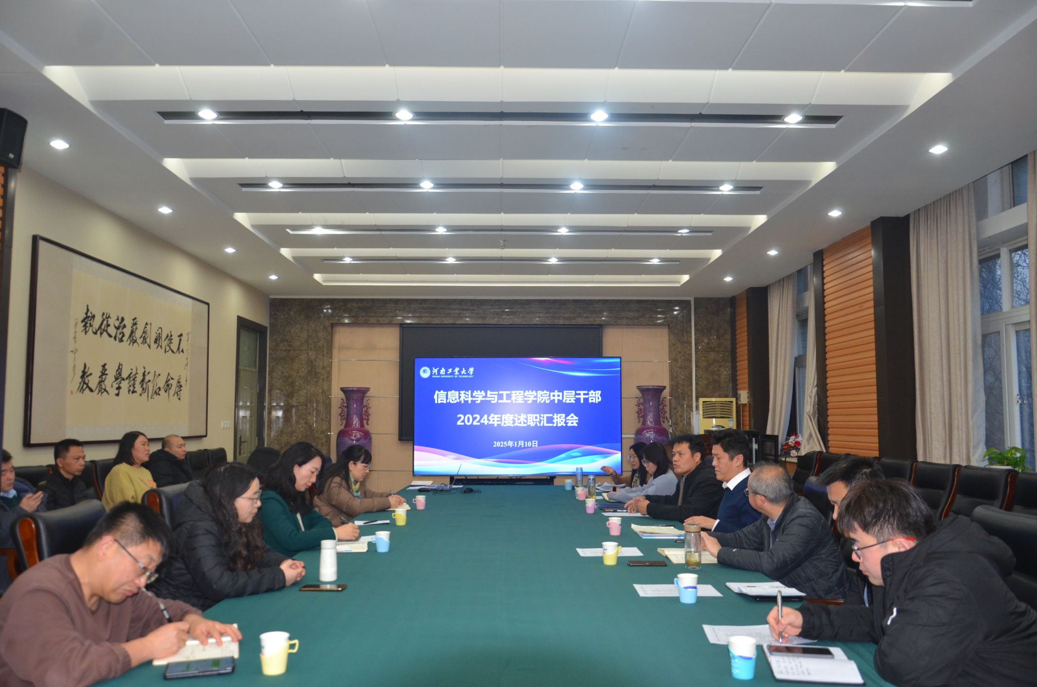 在6225会议室召开2024年度中层干部述职汇报会。学院全体领导班子成员、全体中层干部参加会议。学院党委书记郭晓旻主持会议。