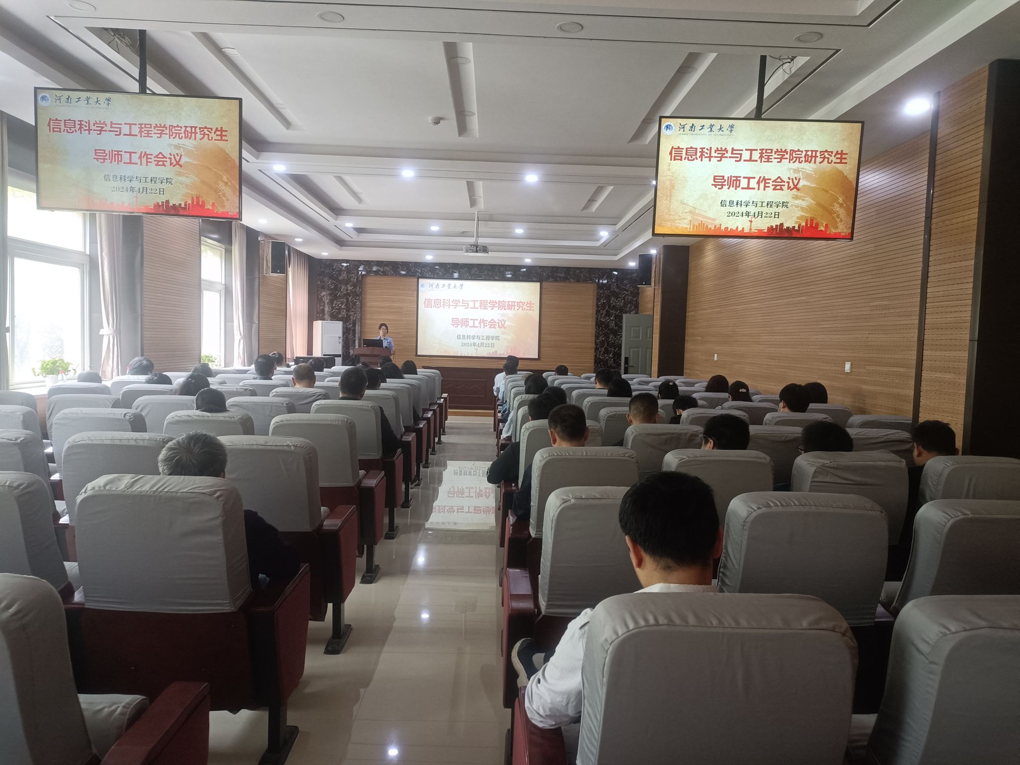 院长张庆辉、副院长秦瑶,以及全体研究生导师参加大会。本次会议由学科科研与研究生工作办公室主任朱春华主持。