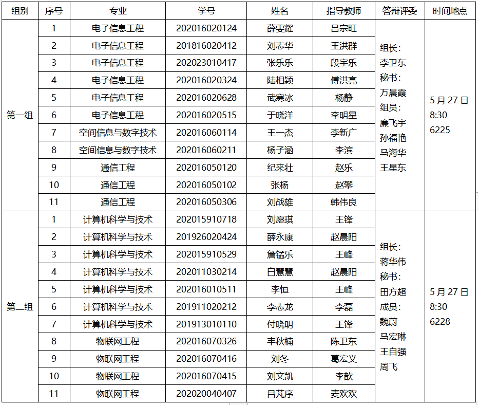 二、公开答辩分组及地点