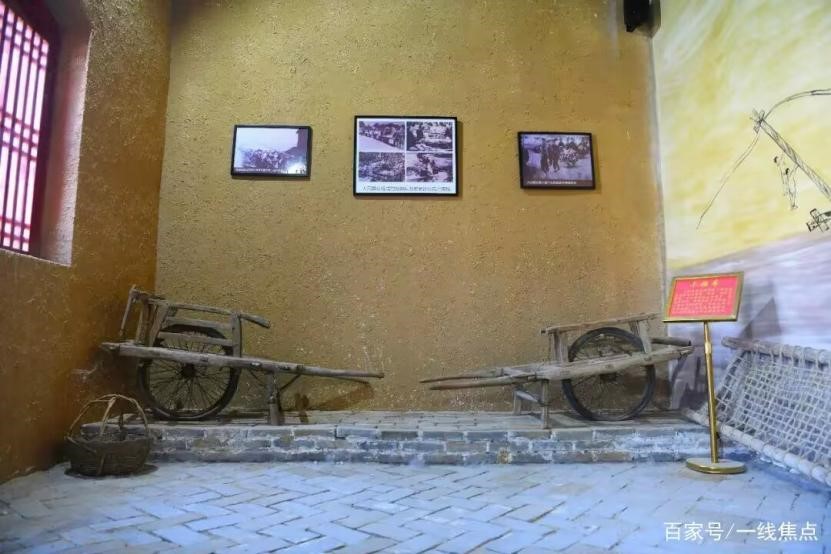 紧接着,团队成员走进另一间小屋,映入眼帘的是一辆宽大的架车和两辆较小的手推车,那是当地百姓抢救伤员所用,结合墙上的壁画,画面上是1948年11月底至1949年1月初的故事,那是淮海战役最后一战“激战永城”时,小吕集村所有的青壮年在党组织的动员和组织下,卸门板、扒房子、电线杆,组成了支前担架队、运输队,冒着枪林弹雨,顶严寒、踏泥雪、忍饥渴,奔赴百公里之外的前线,抢救回多名伤病员。