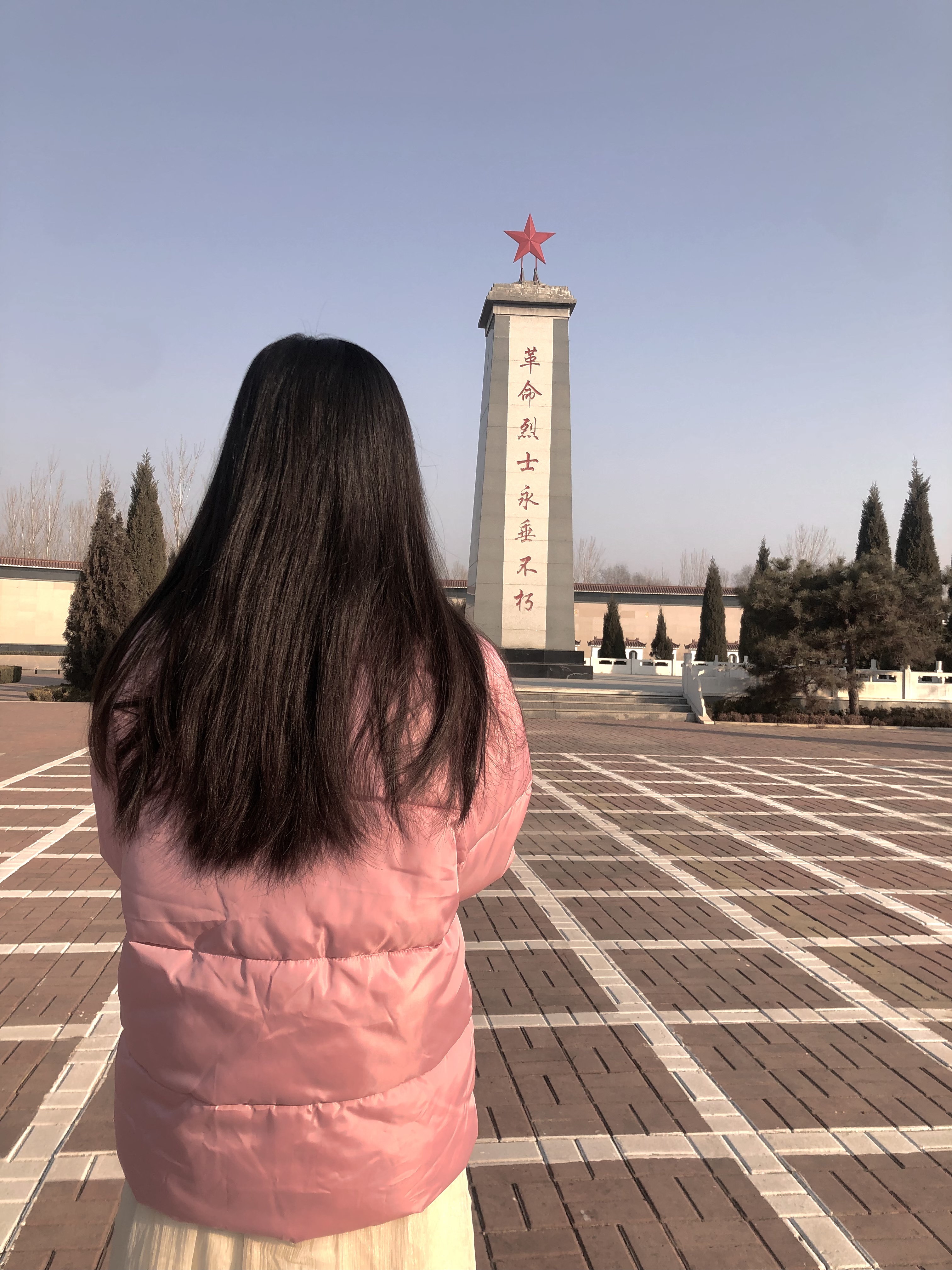 进入烈士陵园后,团队成员首先瞻仰了烈士纪念塔,它的四周篆刻的是几位革命烈士的英勇事迹。团队成员在这里进行了默哀。