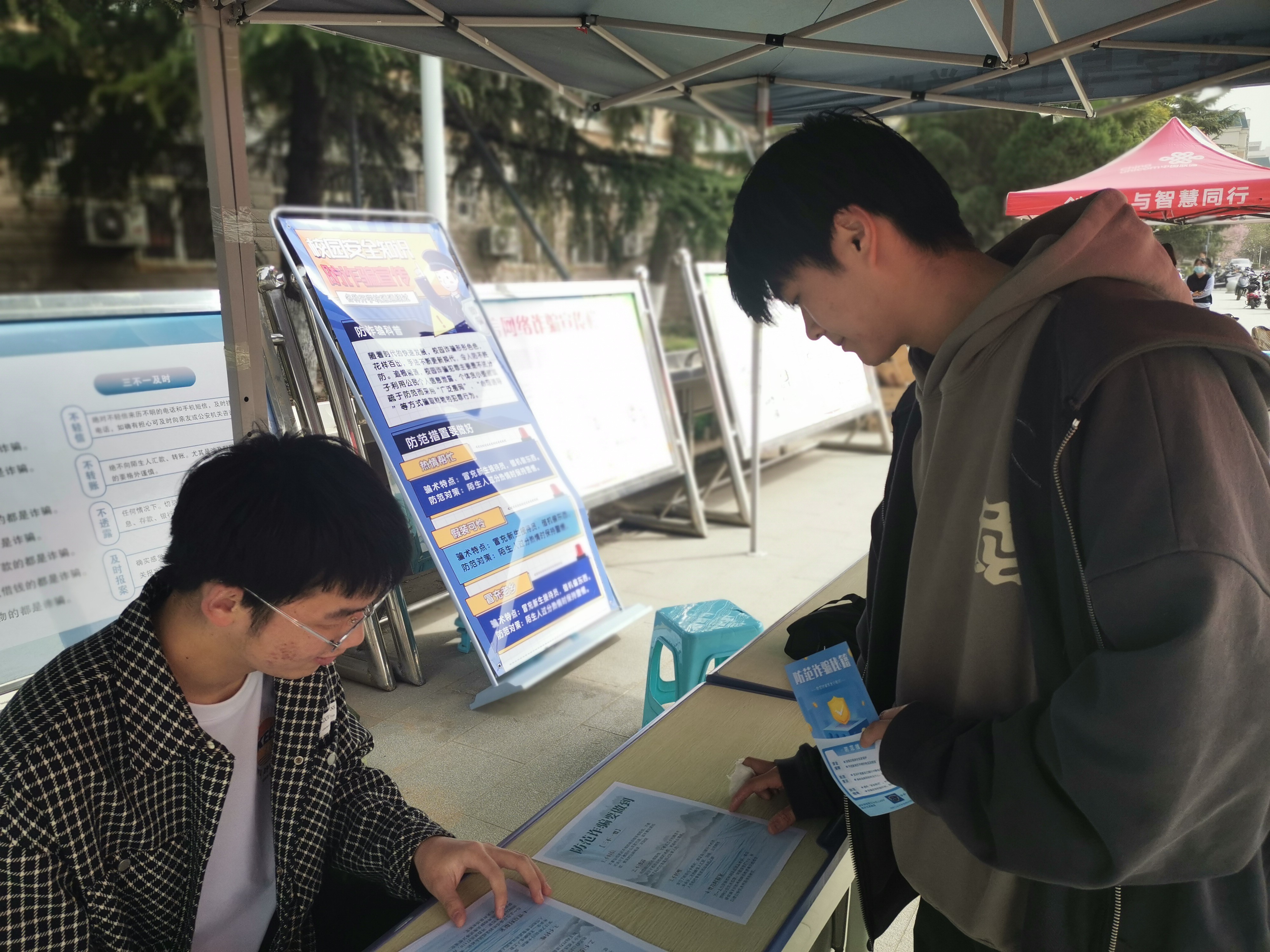 钟楼广场为同学们宣传防诈骗知识,旨在进一步增强大学生的反诈意识和反诈防范能力,保护他们的财产及名誉安全,学院团委书记刘磊、辅导员刘思聪和团委学生会学风建设助力团全体成员参加此次活动。