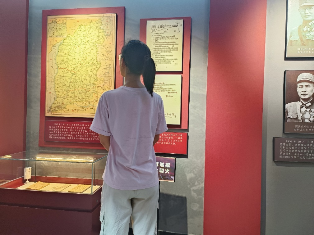实践团队成员步入院落,陈设如初,一幅幅历史画卷展现在眼前。跟随导览图,王佳璇逐一参观了各个展室,在展室内的每件展品、每张照片和音像资料前,驻足观看,重温革命岁月,深刻了解了“洛八办”建立的历史背景以及在抗战时期发挥的关键作用,从中感受到了在那个战火纷飞的年代中无数先辈们不怕牺牲、英勇战斗的伟大革命精神。