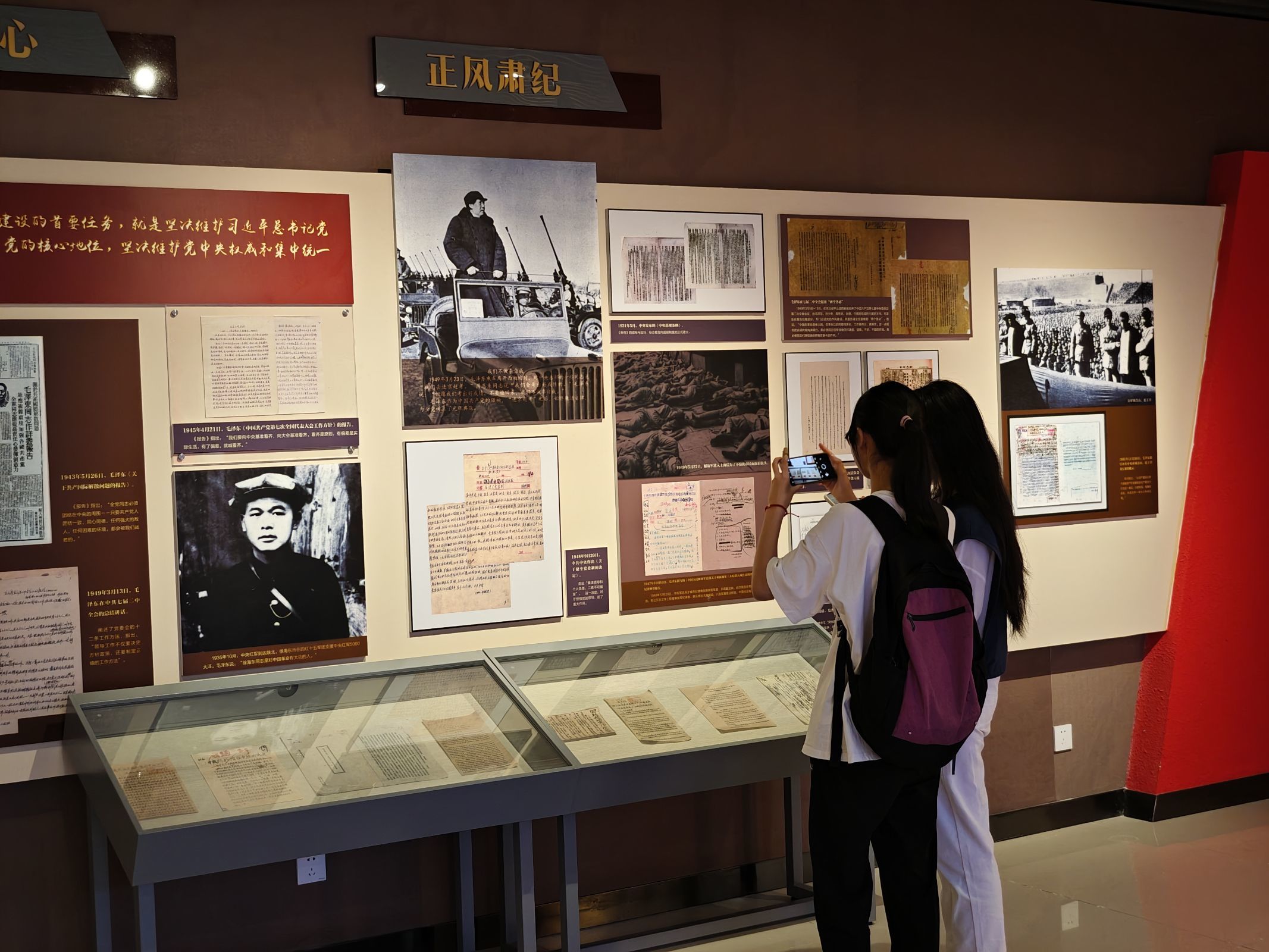 今天的第二部分是自身建设,由党建制度、维护核心、正风肃纪三个部分组成,习近平总书记说过“办好中国的事情,关键在党”,依序讲述了党发展中的相关事例:1929年陈仪关于朱德红军情况的报告,其中提出了著名的三湾改编;徐海东在红军刚刚结束长征最困难的时期援助5000大洋,其雪中送碳的行为正是共产党人维护核心的品质;1926年中央扩大会议通告,坚决清洗贪污腐败分子。在本部分结尾处,又向参观队员们检出近年来习近平总书记的发言“希望广大党员干部认真学习党史、新中国史,深刻认识红色政权来之不易,新中国来之不易,中国特色社会主义来之不易,希望广大党员干部不忘初心。”这段话,便是这些天社会实践小组来到档案馆进行党史学习的根本目的,也是对他们的根本要求。