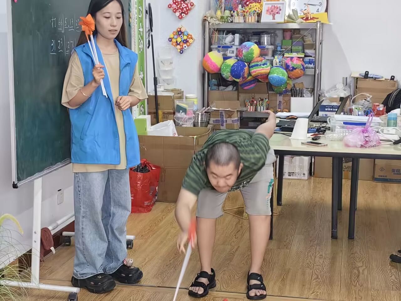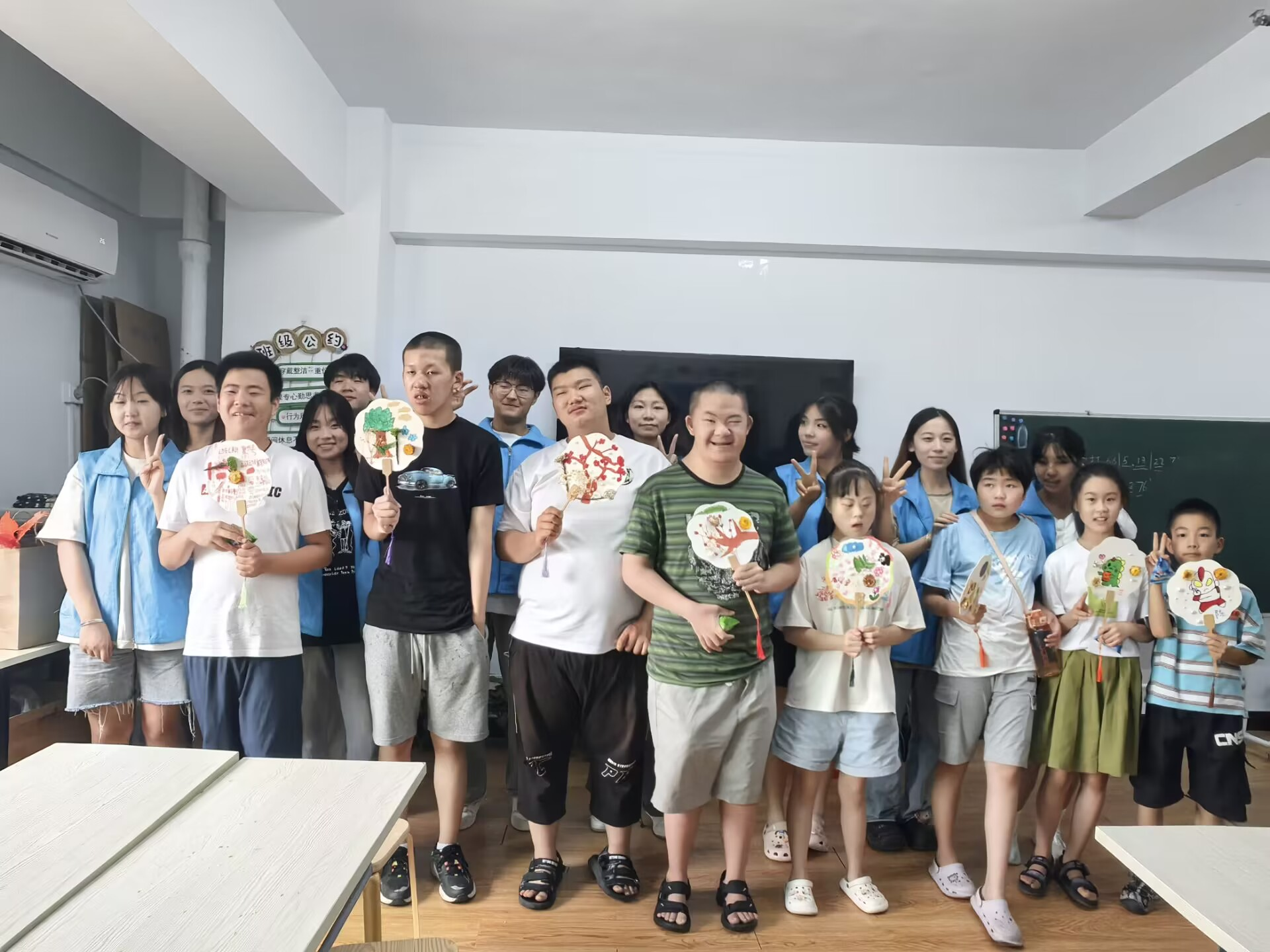 图4 志愿者们和孩子们一起制作团扇