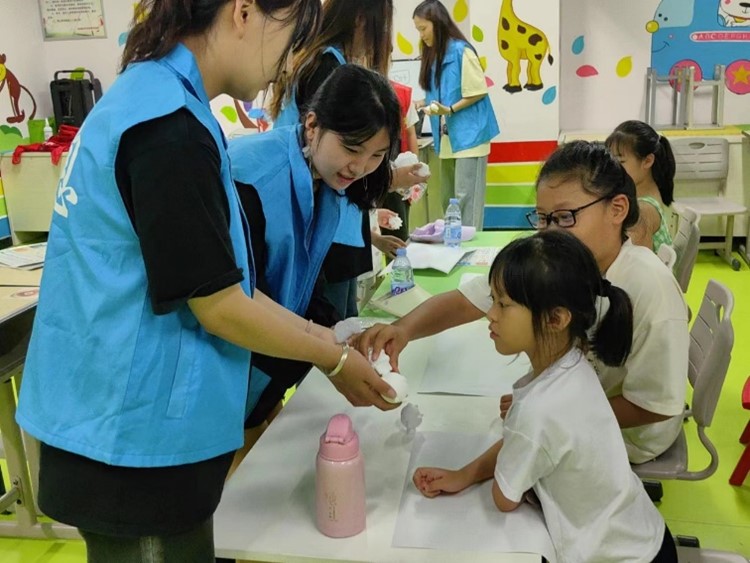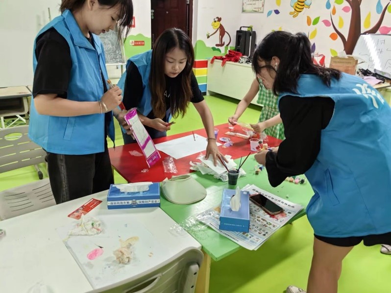 为了激发孩子们的创造力和艺术天赋,志愿者们为孩子们准备了绘制的空白石膏和绘画工具。樊弋菲、王丽槿等同学在整个过程中耐心指导,与孩子们一同分享绘画技巧和经验。孩子们兴奋地拿起工具,尽情发挥他们的创造力,纷纷展现出自己独特的艺术才华,创作出了一幅幅精彩的作品。