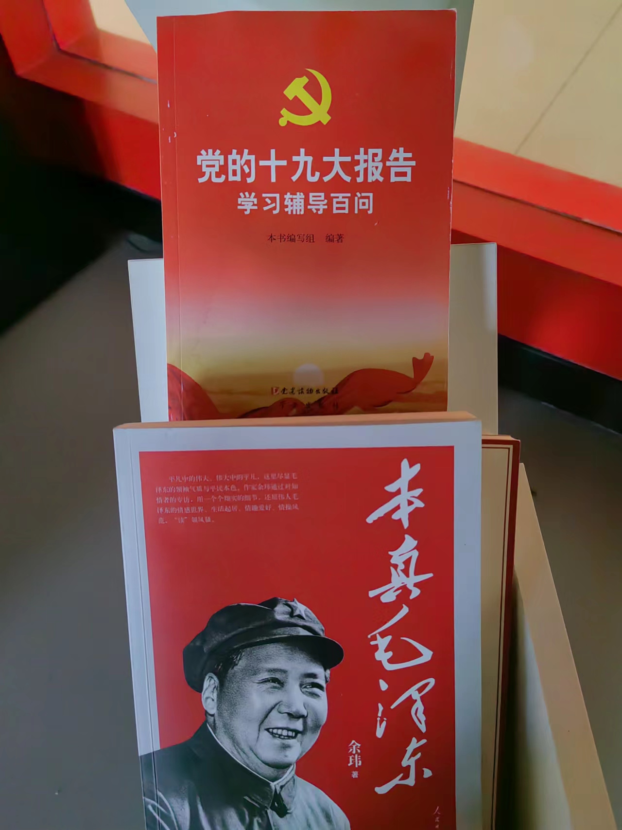图四 黔南州惠水县红色主题展馆书架上所摆放的书籍