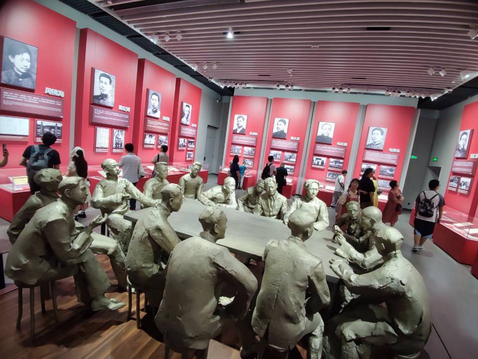 现场参观的团队成员认真学习、时时驻足,沉浸在中国共产党诞生的光辉历程之中,大家不时拿出手机拍摄眼前的珍贵文物,将伟大的建党精神铭记于心。