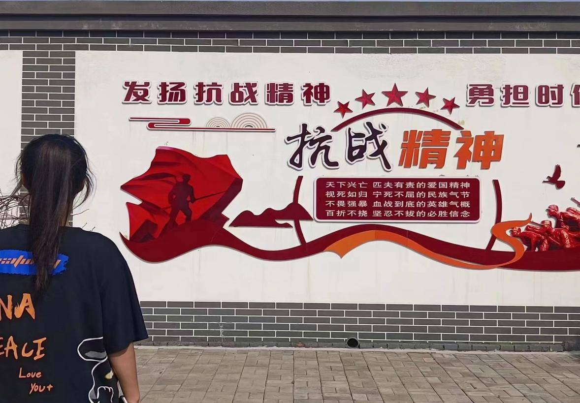 实践团队首先到达和顺县会里村进行了实地参观调查,初踏入村庄,家家户户外围墙上都有党的相关标识以及宣传语,村子里整齐的柏油马路,五彩的墙画,墙画无一不在传达党的中心思想,处处弘扬抗日精神。