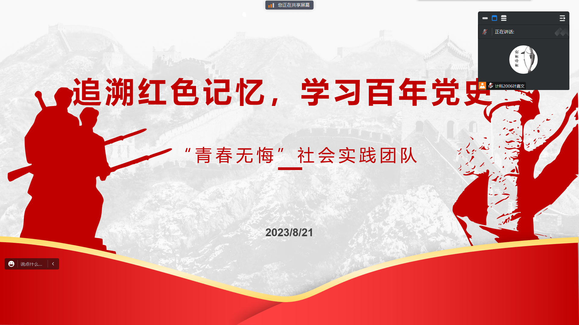 “青春无悔”社会实践团队于8月21日晚9时组织观看中国共产党奋斗百年历史纪录片。