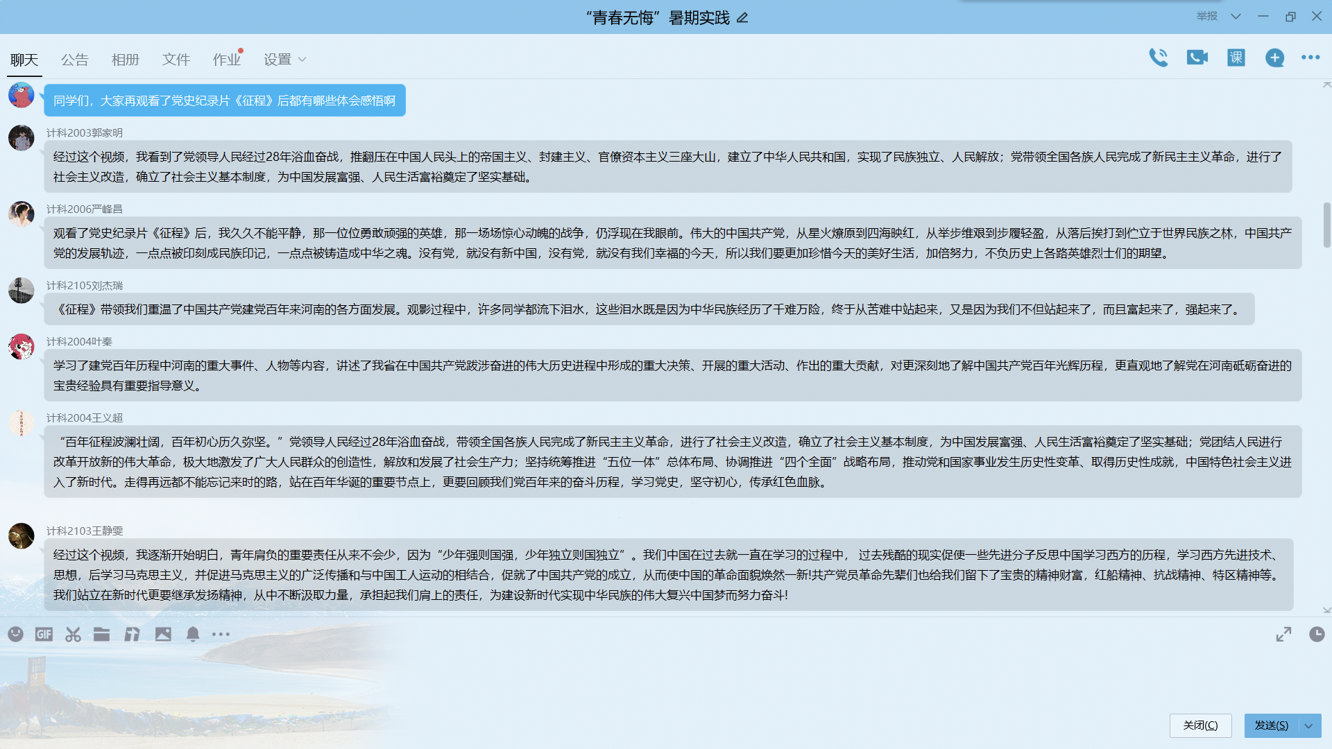 在集体观看纪录片后小组成员在群中发表了观看纪录片后的想法,圆满结束了本次的学习。