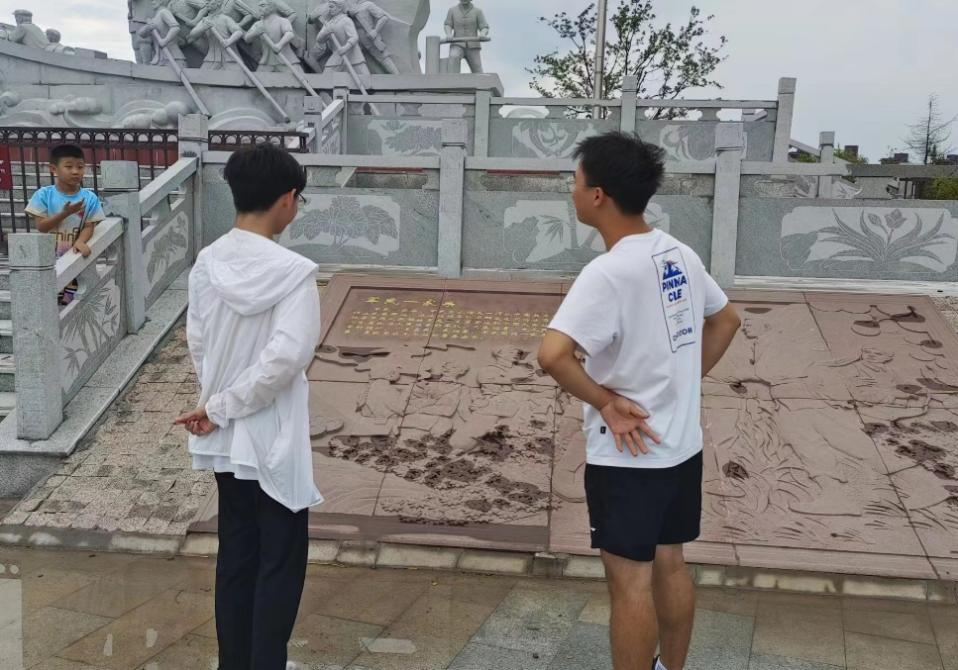 上午8时,实践团队来到了胜利广场,映入眼帘的是一座巍然屹立的刘邓大军渡沙颍河主题雕塑。这次渡河战役发生在民国时期,刘邓联军是由中国共产党领导的一支革命军队,当时正与国民党政权进行争斗。胜利的战役中刘邓联军需要渡过沙颍河,以继续向国民党势力渗透。渡河战役对刘邓联军后来的行动起到了重要的推动作用,成功地扩大了他们在河南地区的影响力,为他们的革命事业奠定了坚实的基础。