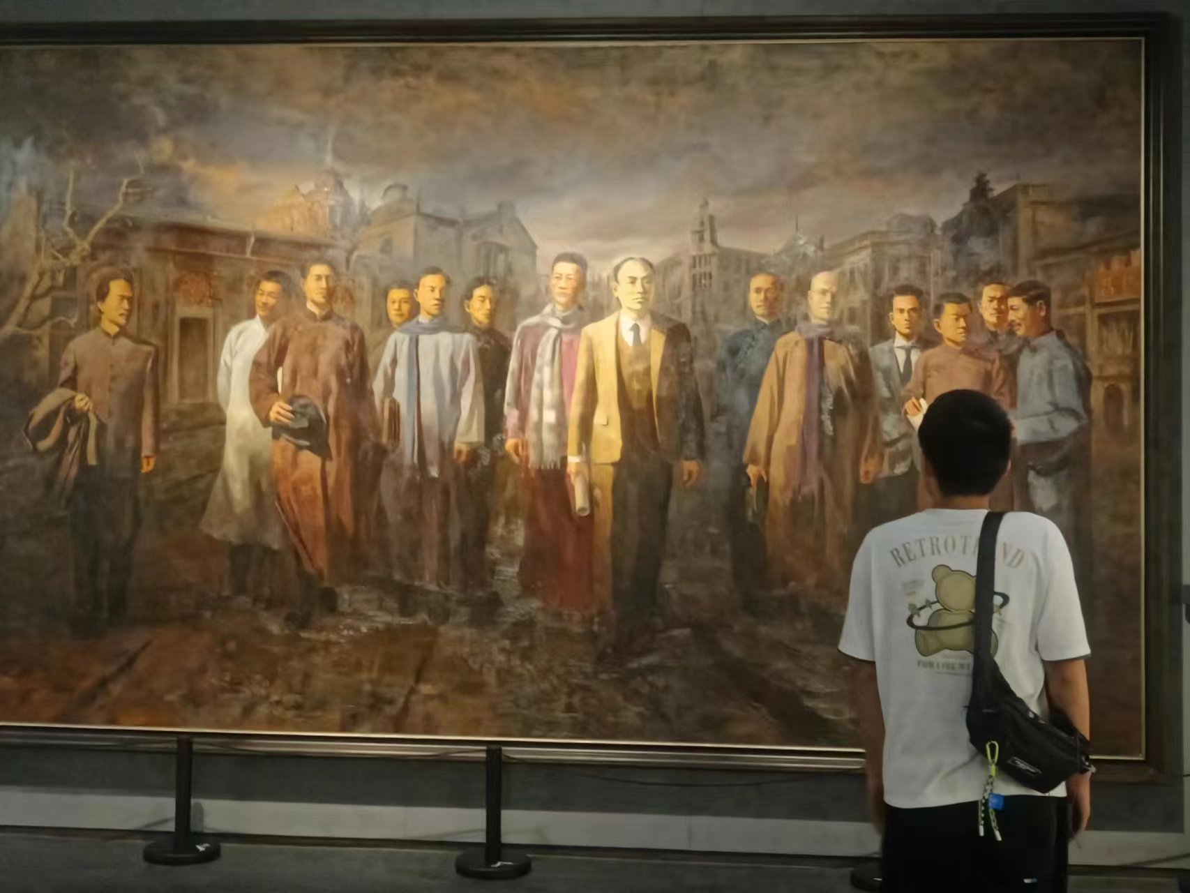 在纪念馆内的展览区,队员们看到了许多珍贵的历史文物和图片,如毛泽东等伟人的手稿、信件、照片等。这些展品生动地展现了中国共产党的艰辛历程和伟大成就。队员们还观看了一部关于中国共产党历史的纪录片,更加深入地了解了这段历史的背景和经过。