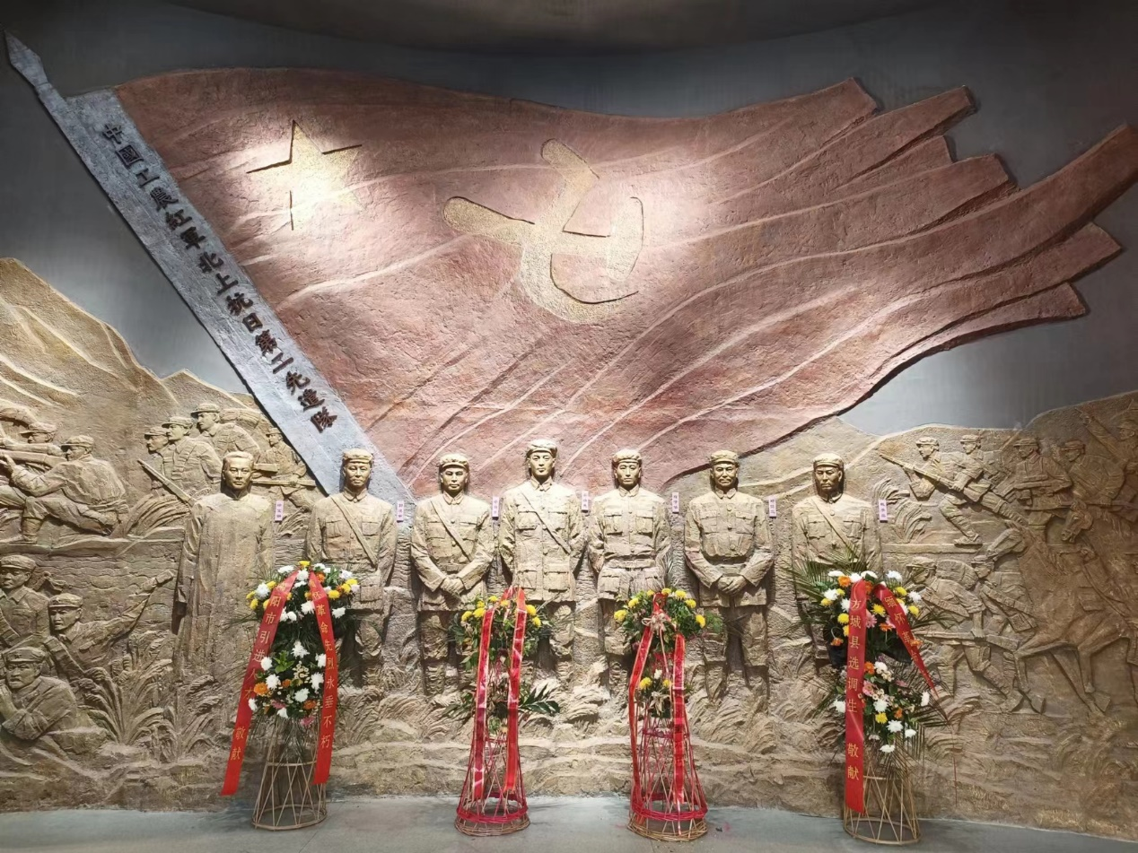 小队一进门就见到了七位烈士的遗像,七位烈士昂首挺胸,宁死不屈的模样令小队成员肃然起敬,致以崇高的敬意。接着我们看到了中国工农红军长征路线图,看着各路军队长征距离之远,小队想到了长征的艰苦与不易,想到了各位烈士为我们抛头颅,洒热血的场面,成员们热泪盈眶。