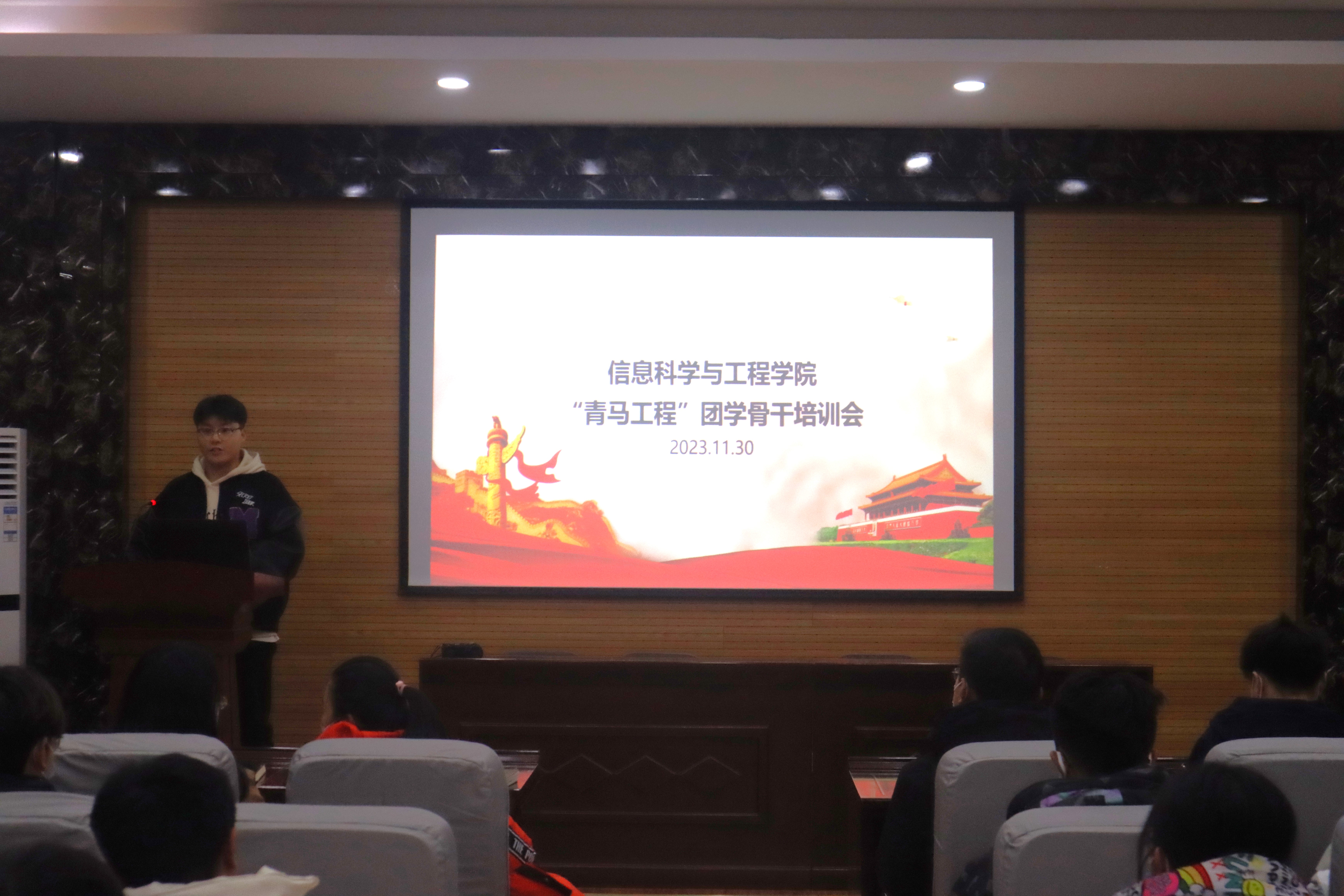 在6228会议室举办“青马工程”培训会,会议邀请计科2209班郑霖、电信2207班岳楷泷向大家做新媒体技能相关培训。学院团委书记刘磊,学工办副主任崔莉莎,全体辅导员老师,院学生会各部门学生代表100余人参加会议。会议由院学生会轮值主席姜帅康主持。