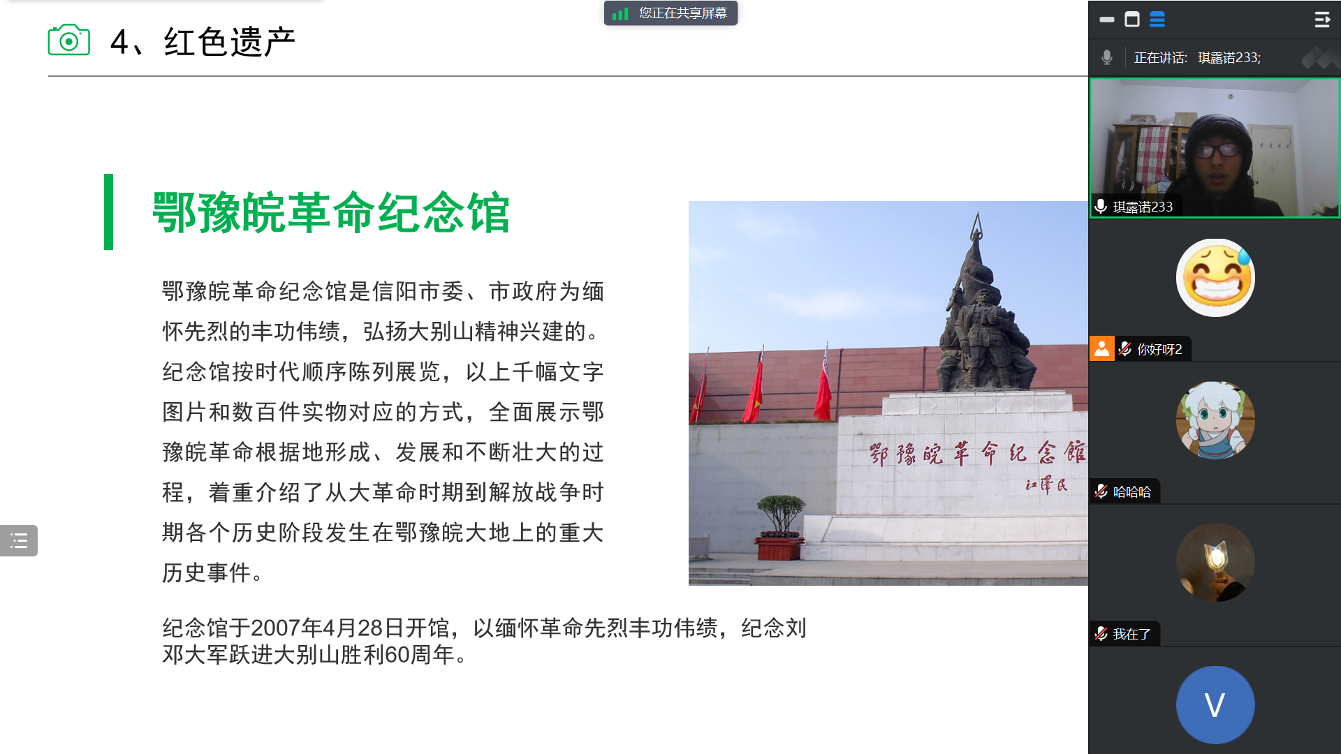 上午,郑永康同学首先介绍了信阳的历史文化、风土人情以及生态文明建设等方面。