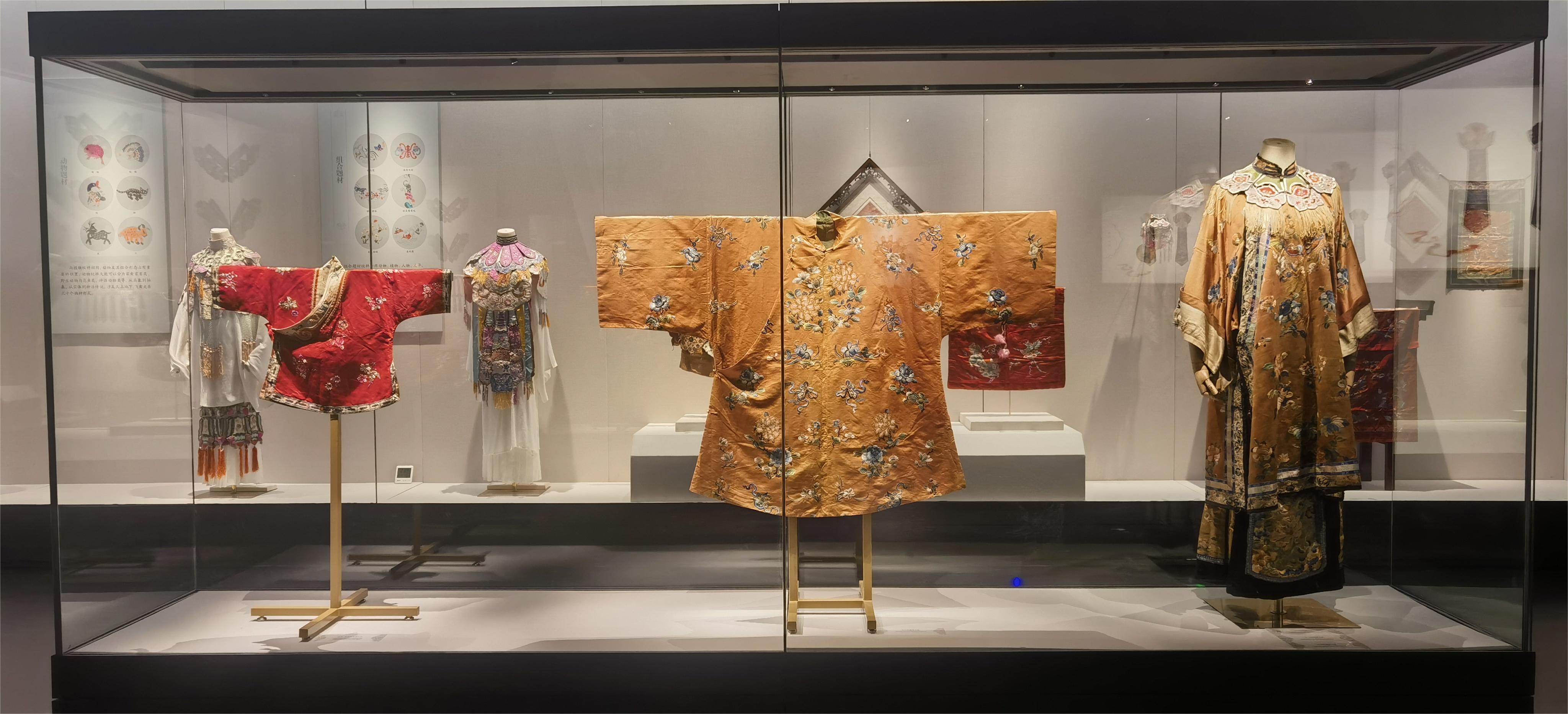 最后,团队成员们学习了豫剧、云肩等中原民族文化。小队成员先欣赏了豫剧«三佛袖»文武小生戏装、《对花枪》姜桂枝戏装、《秦雪梅》中秦雪梅戏装等豫剧服饰。接着,成员们通过观看豫剧《穆桂英挂帅》亲身感悟豫剧的文化魅力。豫剧主要伴奏乐器有板胡、二胡、三弦、琵琶、笛、笙、唢呐、大锣、二锣、手钹、板鼓等。豫剧唱腔是属于板式变化体,而曲剧唱腔、越调唱腔则分别展现了通俗易懂,富有生活情趣与优雅纯朴的两种风格。而在锦绣云霞展馆,展览以云肩绣品为主,多为晚清民国时期藏品。独特精美的绣制形式,有图腾神仙、花鸟鱼虫、戏曲人物、草木山水和吉祥符号等,展现了中原地区深厚的民俗文化风貌。