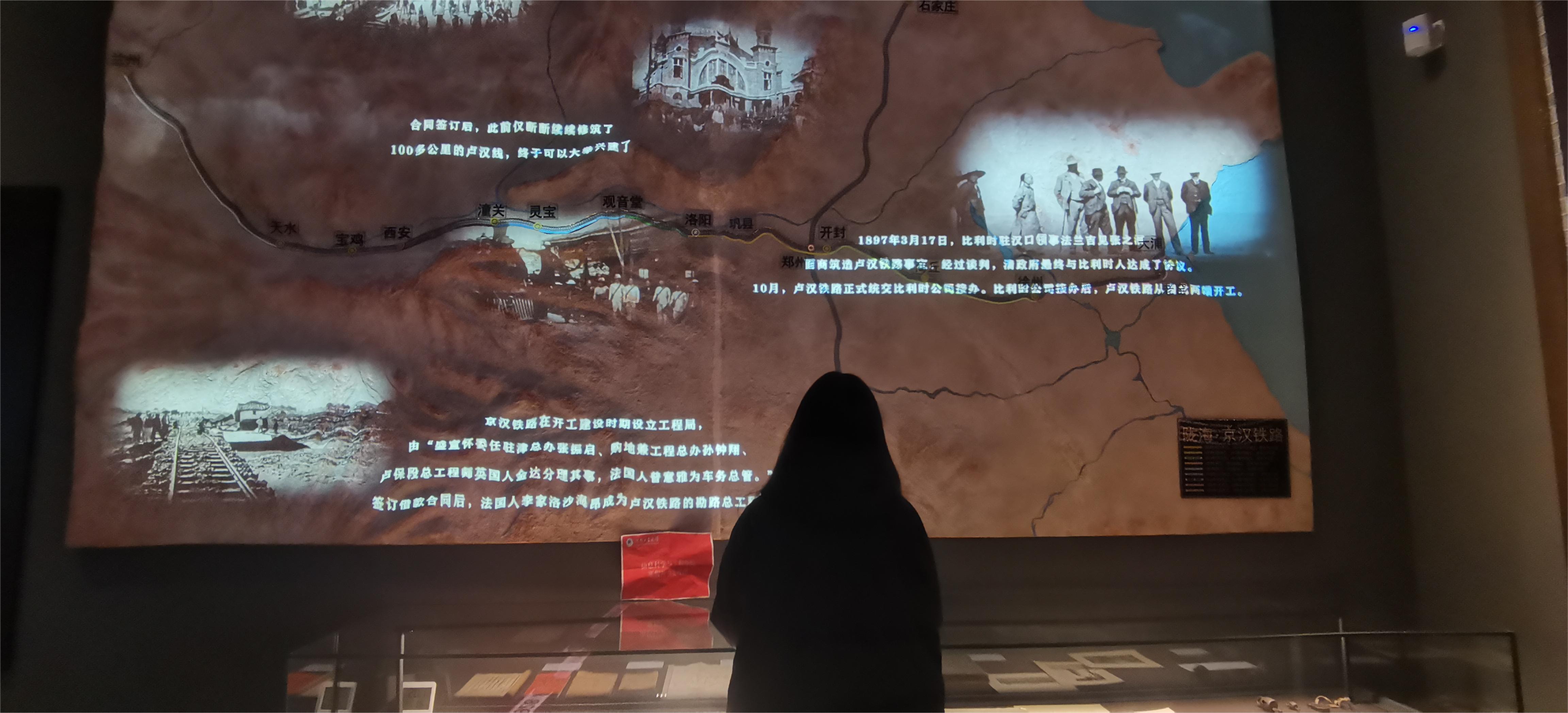 接着在创世王都、天地之中、百年郑州等展馆中,团队成员全景式学习了从旧石器直至现在郑州历史的发展脉络。通过观看大屏幕视频,小队成员了解到,铁路交会,车轮滚滚,先辈们用血与泪打下了这片江山,又依靠铁路枢纽优势,使郑州开埠通商水到渠成,工商业快速发展,城市规划雏形初现,俨然成为一座新兴的商业城市。