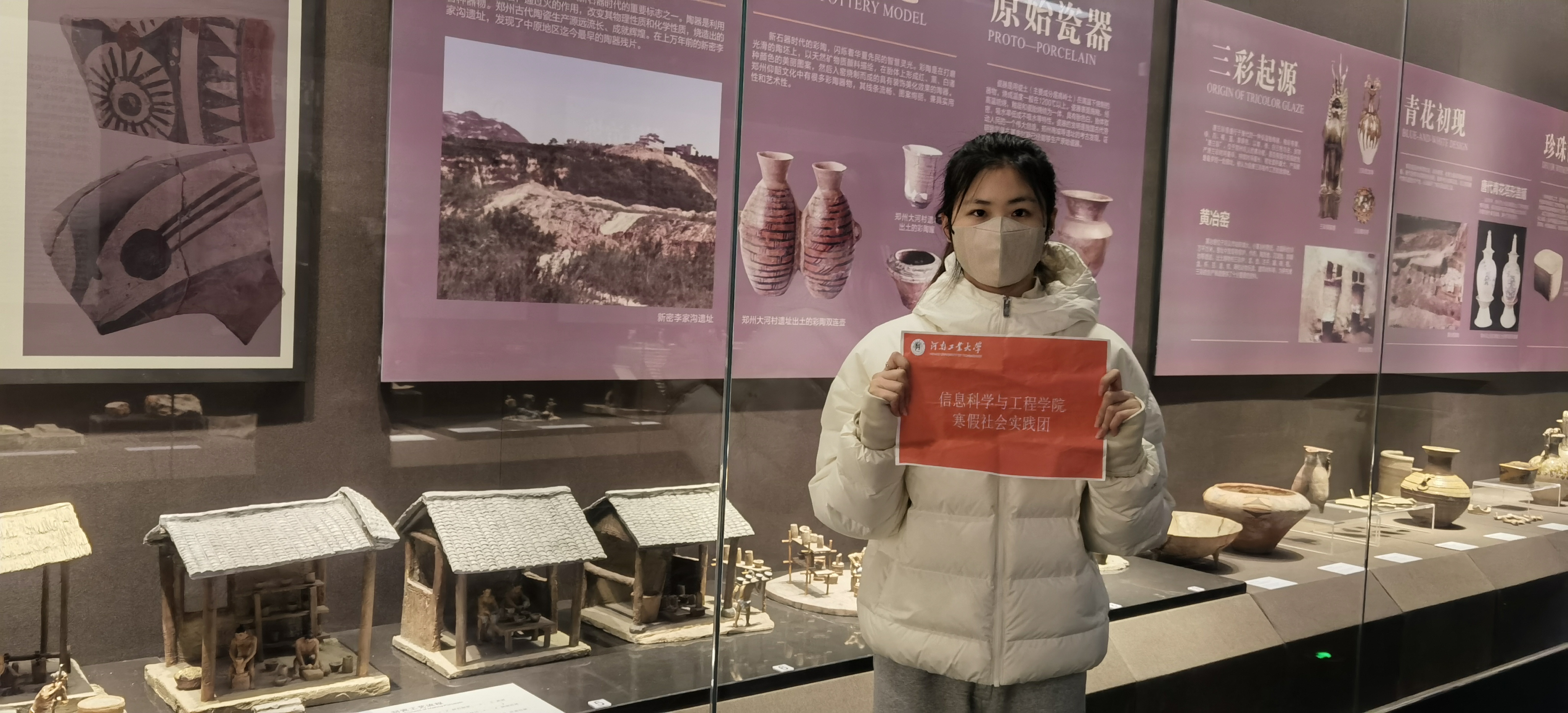 “寻根问魂,薪火相传”实践小队成员参观了“首批‘国家一级博物馆’——郑州博物馆”。本次实践活动,小队成员透过历史文物,深入感悟历史变迁、时代变化。通过文化瑰宝,感受河南文化的厚重与多彩。