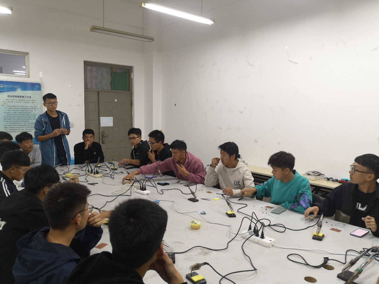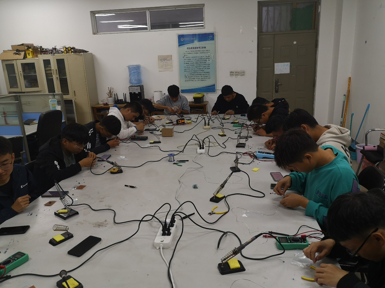 看小20们左手焊条右手焊枪,焊点悠悠圆润,焊缝条条整齐,电流在这里以光速传导,跟随着思路点亮了理想的灯光!我们的小20已经开始了他们的第二次焊接培训喽,一个简单、易上手又有趣的LED触摸灯会让他们用自己的想法和思路点亮自己的兴趣,热爱会使他们的未来更加多彩。一次又一次的思路在电路板上的书写,构建出了一幅电路的画。途中可能有瑕疵,但不要着急,我们优秀的学长们也不是吃素的,以焊枪为笔,轻点描绘,了了数笔,一遍一遍的克服困难,一笔一笔的修改,终会获得意味不凡的成功。