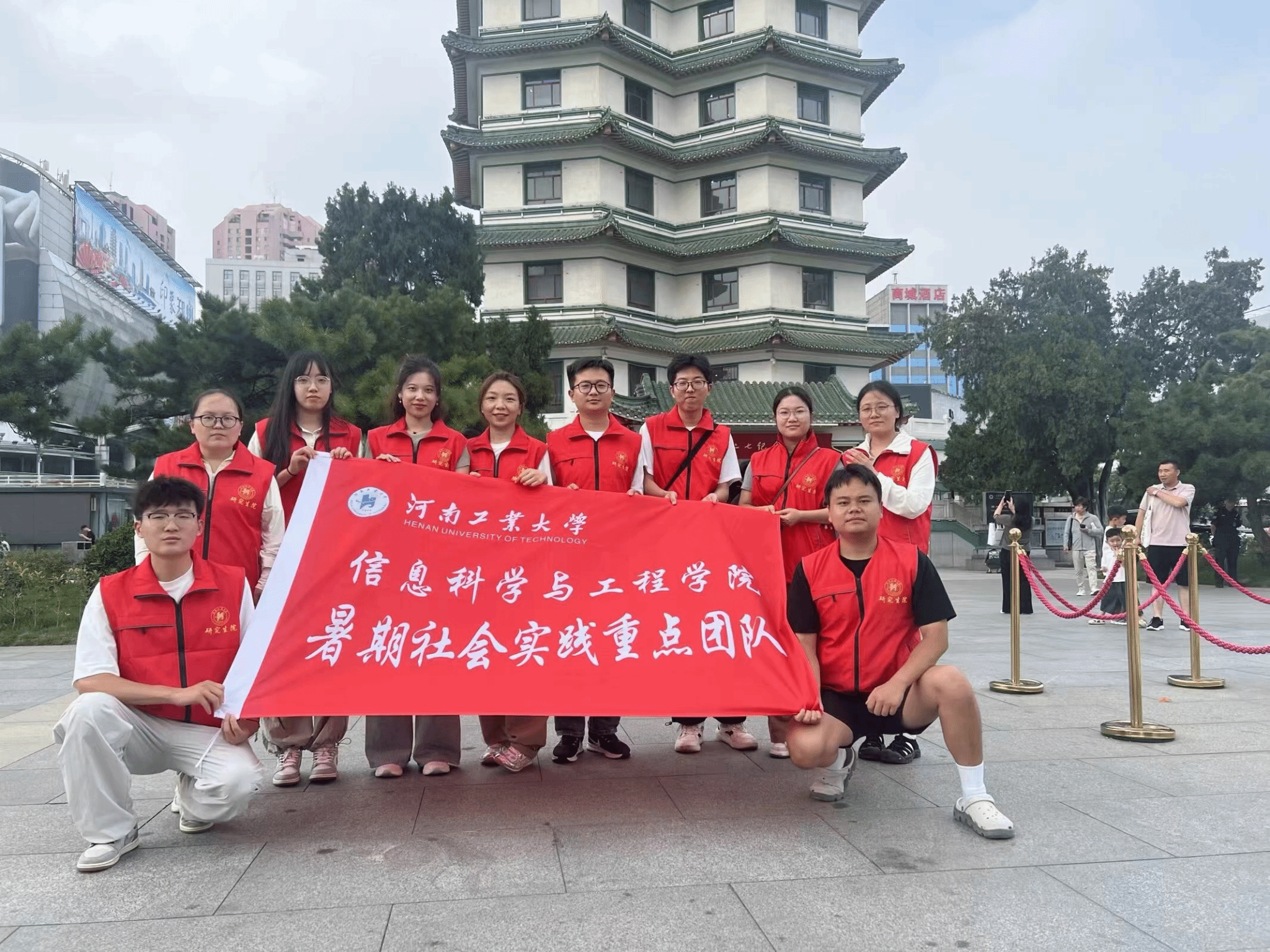 随后,实践团前往二七塔,这座塔不仅是郑州市的地标性建筑,更是二七精神的象征。站在塔下,成员们仰望高耸的塔身,感受到了历史的厚重和先辈们的英勇。
