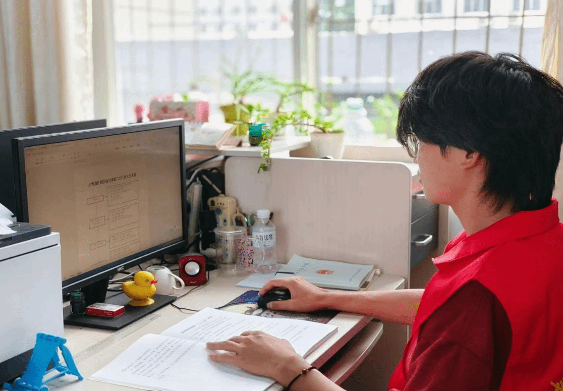 在换届过渡期,志愿者在姜茜的指导下协助新一任团委副书记张迎轩熟悉团委的相关工作,并帮助其进行会议后期的资料整理,将会议记录、选举结果的工作报告、新一任共青团曲沟镇委员会名单、书记副书记名单等团委相关换届资料汇总并且编制成册。