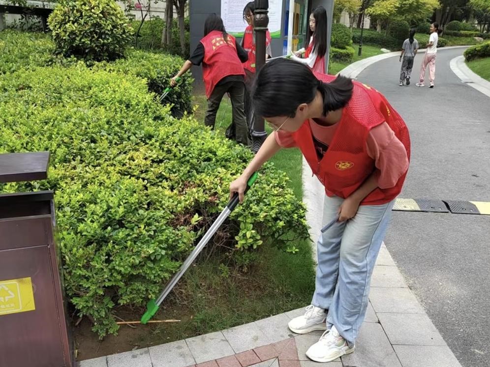 8月12日下午,队员们手持工具开始清理社区街道和绿化带垃圾。蝉鸣声声声入耳,沿途绿树成荫,嬉戏的儿童和摇着扇子闲话家长里短的的居民再现“黄发垂髫,并怡然自乐”的盛景。在工作人员的带领下,他们不畏酷暑,细致入微地清理着每一处垃圾,用实际行动让社区环境焕然一新。
