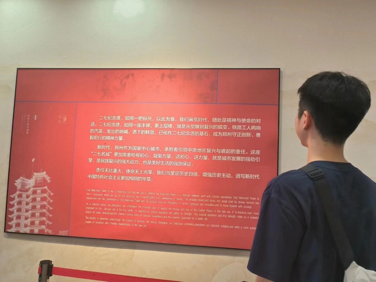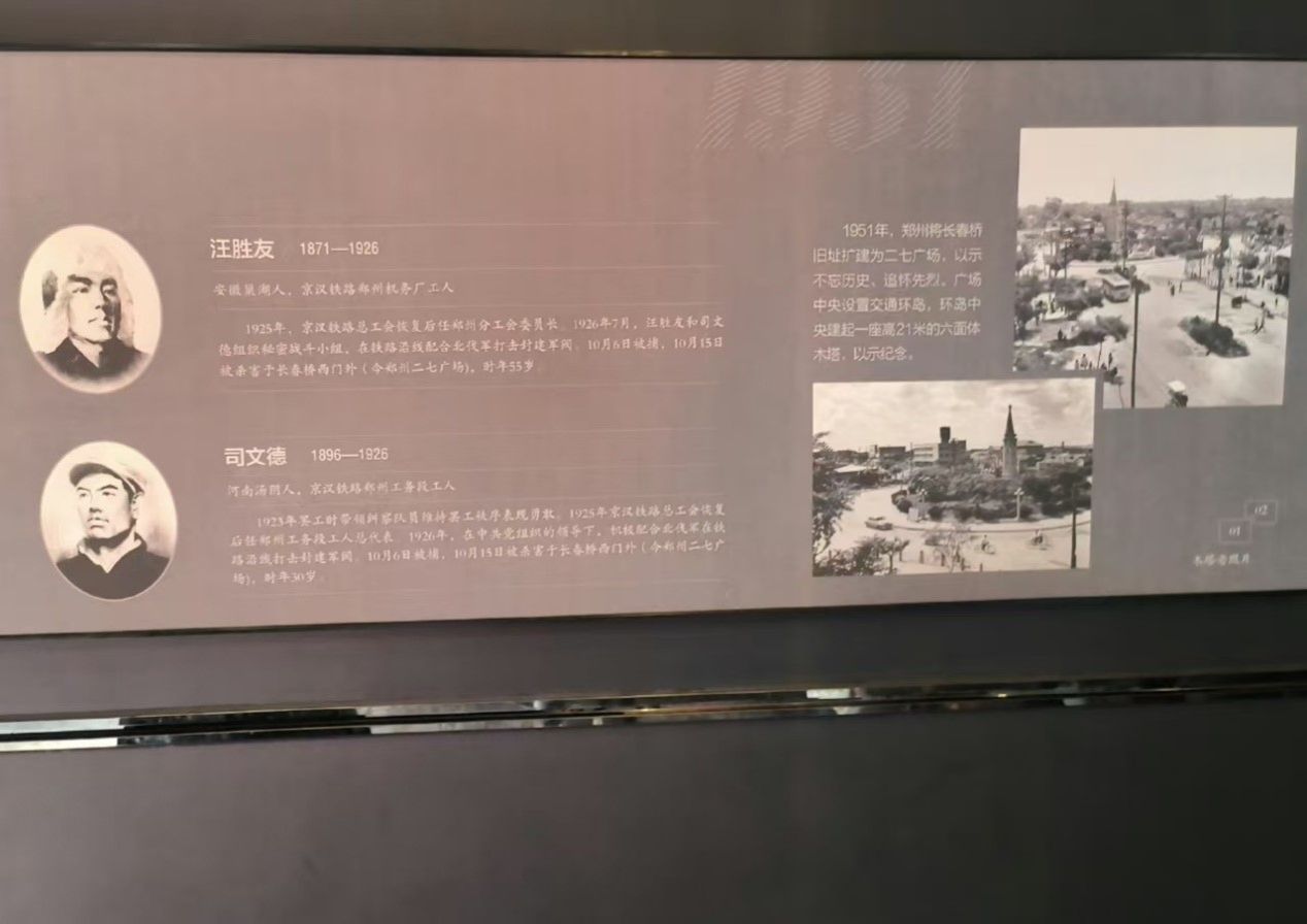 在这一层了解到了二七塔建造的背景以及所表达的意义,二七纪念塔全称是:郑州二七大罢工纪念塔,它是为了纪念发生于1923年2月7日的二七大罢工而修建。也讲到了这背后的故事:1923年2月1日,京汉铁路各站工人在郑州普乐园(今二七纪念塔),成立京汉铁路总工会。