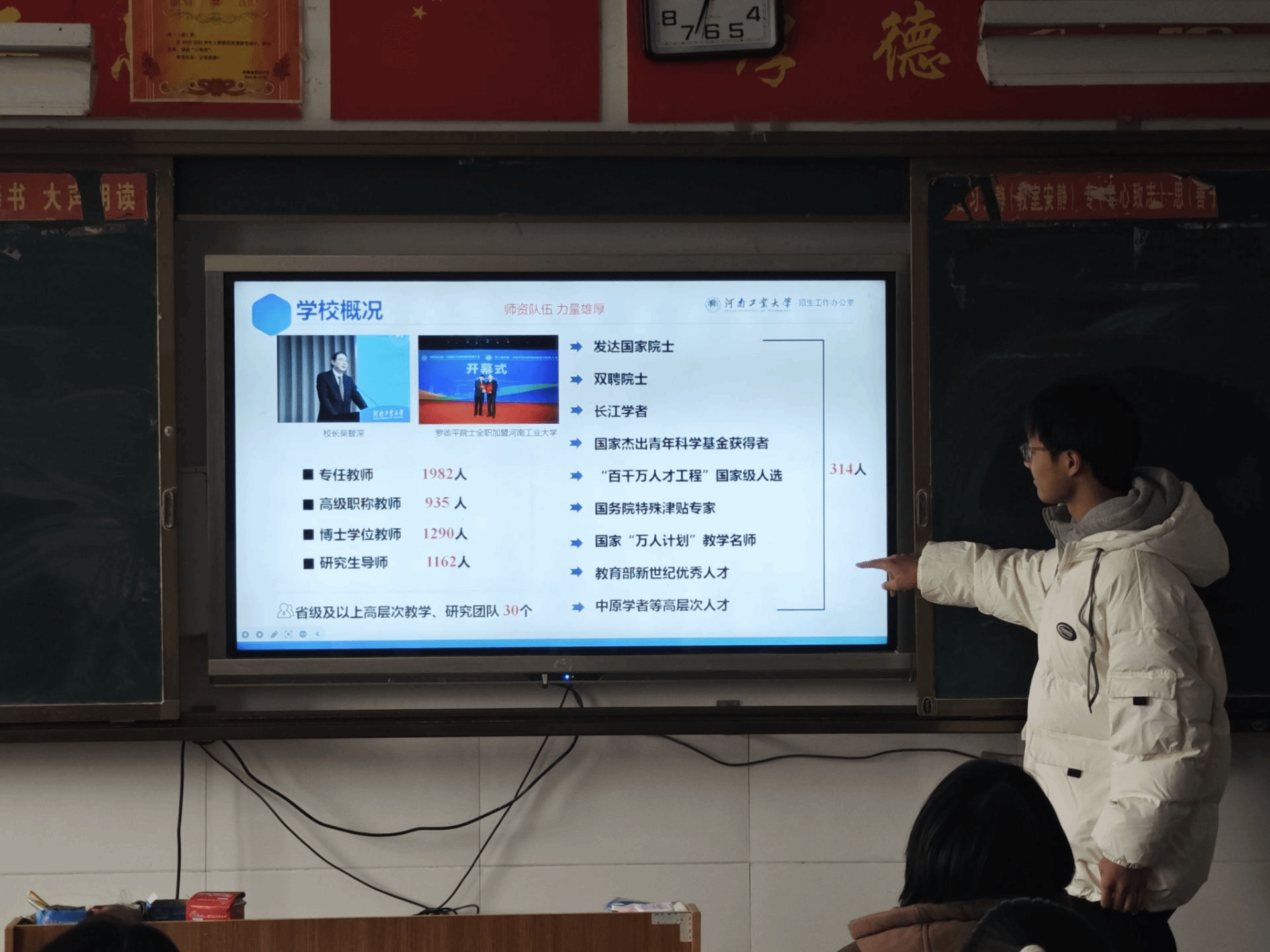 2025年1月22日上午11时30分,“淮工星传队”队携招生手册等物资来到河南省淮阳中学开展宣讲活动,向同学们传递学习经验,对问题进行答疑解惑。