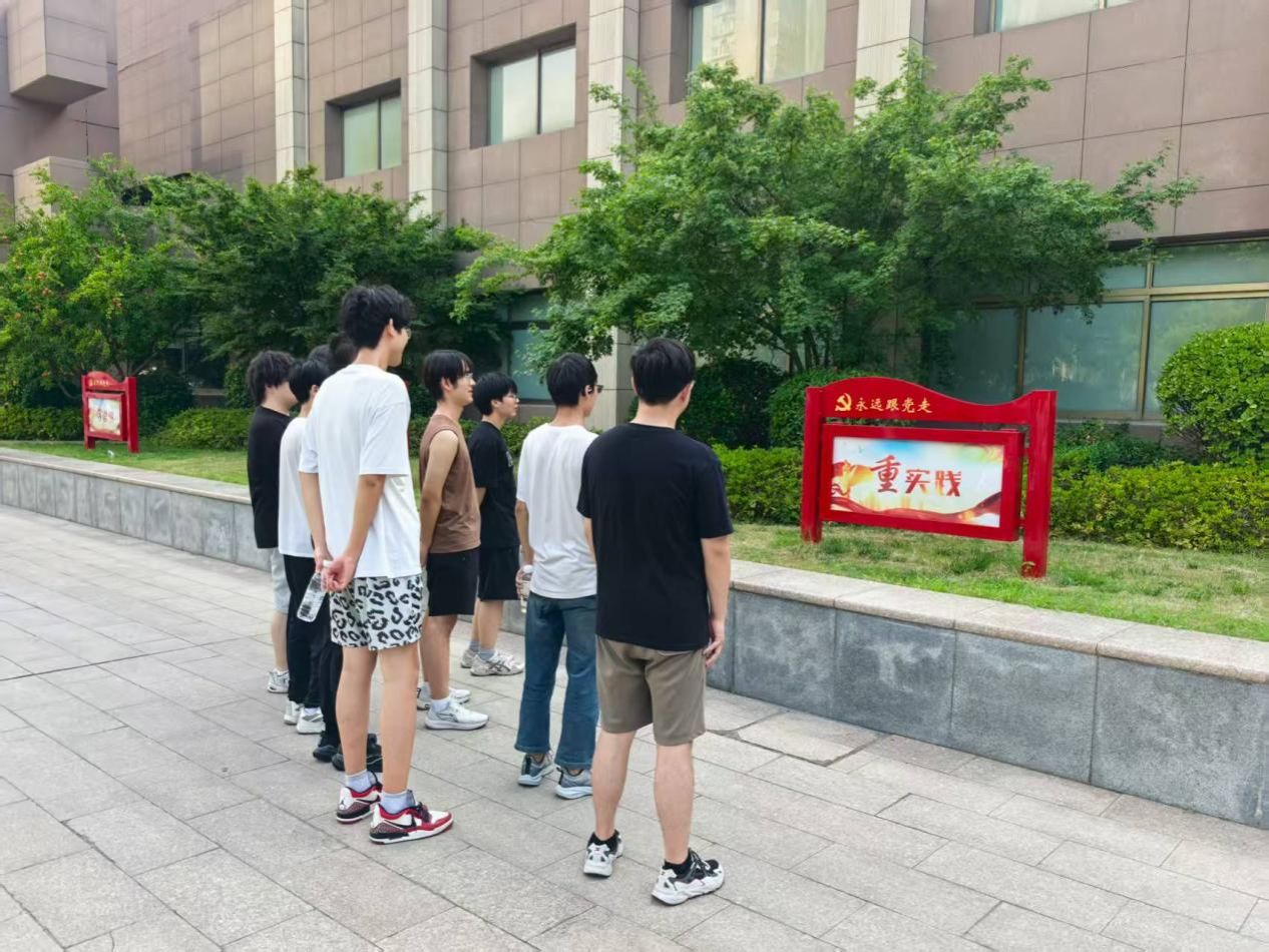 队员们有序参观实践基地,从建筑场景到党史文化标识,沉浸式感受“重实践”理念。在“不忘初心、牢记使命”主题石碑前,大家驻足思考,交流新时代青年如何将初心融入实践,以行动践行担当。过程中,青年们结合专业知识与现场感悟,探讨理论学习与实践落地的结合点,让思想交流碰撞出火花。