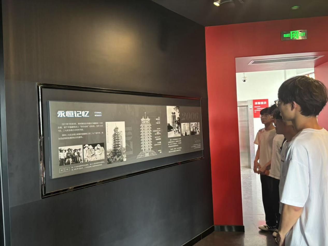 活动期间,团队成员还对纪念馆工作人员和部分参观游客进行了访谈交流。纪念馆工作人员详细介绍了纪念馆的日常运营情况以及在红色文化传播方面所做的工作,着重强调了新时代青年传承革命精神的重要性。一位老党员游客也分享了自己的感悟,他说:“二七精神是艰苦奋斗、团结拼搏的象征,年轻人应该从中汲取力量,为国家发展贡献力量。” 这些访谈内容为团队提供了宝贵的一手资料,进一步加深了成员对红色文化的理解。