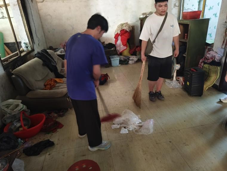 在冠军村,团队成员深入走访了孤寡老人家庭,开展“生活帮扶+情感陪伴+科技普及”三位一体的服务模式。他们帮助老人打扫房间。团队成员为老人整理杂乱多年的屋内陈设,耐心与老人聊天解忧,倾听他们的生活故事与心理需求。