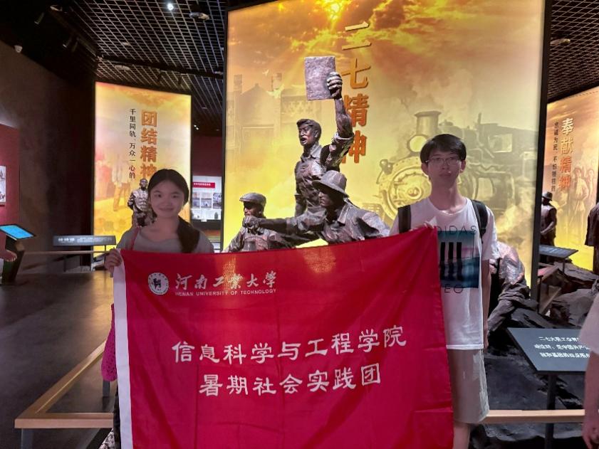 信息与工程学院“星火接力,丹心筑梦”暑假社会实践团前往郑州市二七纪念堂,开展以“追溯红色历史,传承革命精神”为主题的社会实践活动,旨在通过实地探访,加深对中国工人运动历史的理解,凝聚青年担当力量。