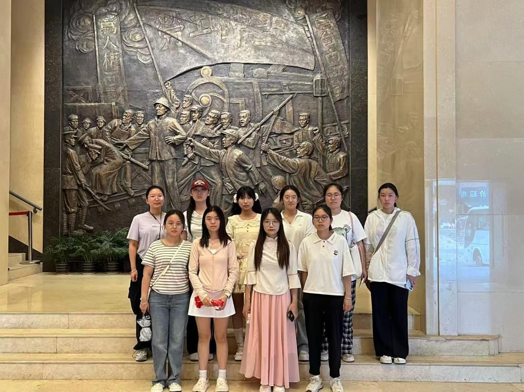 抵达二七纪念塔,队员们拾级而上,环绕塔身,浮雕上重现的京汉铁路工人大罢工场景,瞬间将大家拉回那个热血抗争的年代。在陈列厅,泛黄的旧照片、锈迹斑斑的老物件,静静诉说着先辈们为争取权益、捍卫尊严,不惧强权、英勇斗争的故事。“课本里的二七罢工,如今亲眼看到这些史料,才真正懂了先辈们的无畏与爱国热忱!” 队员小陈驻足展品前,目光坚定,难掩震撼。