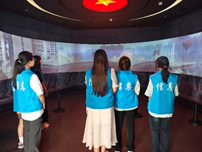 8月25日上午10时,团队成员准时在二七纪念塔前集合,随后,队员们依次参观了塔内的历史展览。展览通过丰富的图片、影片、实物和文献资料,生动再现了1923年京汉铁路工人大罢工的壮烈场景。队员们认真观看,深刻体会到革命先烈为争取工人权益和国家解放所付出的巨大牺牲。