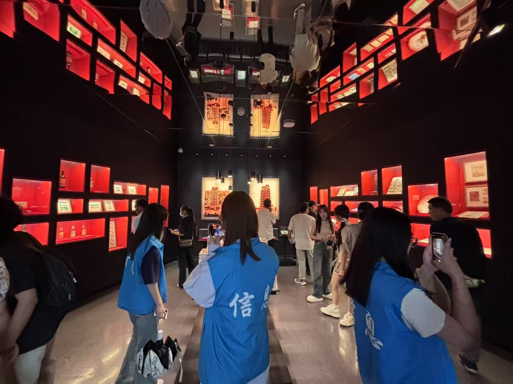 “特色展品参观交流” 处,成员们聚焦展柜里的老酒瓶与老照片,蓝色背景、红色展柜形成独特视觉,队员们讨论展品背后的城市记忆,串联起二七历史与市井生活。翻开 “二七纪念塔主题画册”,既有现实中的塔影,也有剪纸艺术呈现的塔貌,传统与现代交织,展现二七文化的多元传承。