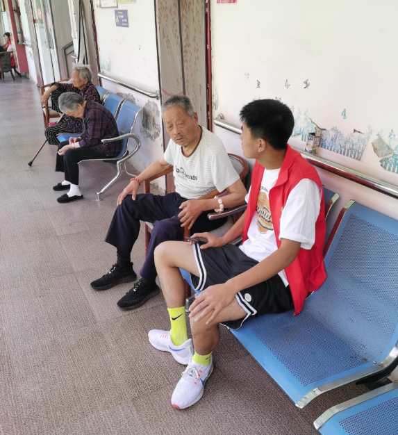 8 月 27日上午 9 时,团队 18 名队员带着提前准备的水果、手工剪纸材料来到老年公寓。陈依琳院长热情接待了队员们,介绍道:“咱们公寓的老人大多性格开朗,退休教师张东风老先生最爱聊历史;曾为豫剧演员的李想女士,你们唱两句她肯定能接上;三楼行动不便的王凤女士,平时很少下楼,你们多去陪她说说话。” 随后,队员们分成三组展开活动:陪伴组负责与老人聊天、读报;文艺组在活动室准备表演;生活组则协助护理人员推行动不便的老人到院子里晒太阳。