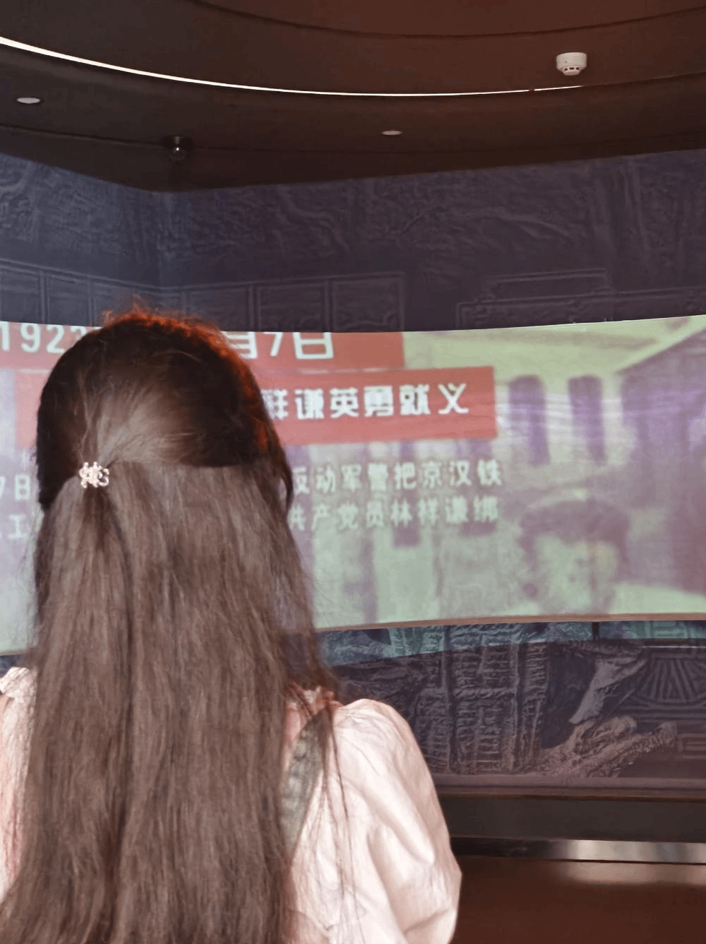 7月2日,团队来到了二七纪念塔附近的二七纪念堂。展馆分为“铁路修建”、“星星之火”和“精神指引”三个部分,通过雕塑群、原始文献与场景复原,再现总工会成立大会受阻、全线总罢工爆发直至工人领袖林祥谦英勇就义的历史瞬间。