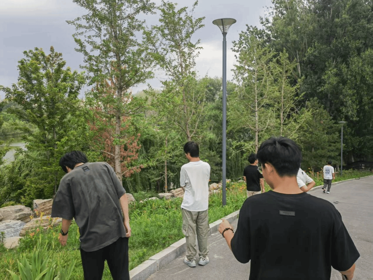 活动伊始,团队成员在西流湖生态公园工作人员的引导下,参观了公园生态。详细了解了西流湖近年来的水质改善措施、植被养护方案及生物多样性保护成果。在交流中,团队成员针对 “如何减少游客垃圾对湖体污染”“水生植物种植的科学配比” 等问题展开提问,工作人员结合实际工作经验逐一解答,为团队后续调研提供了专业参考。