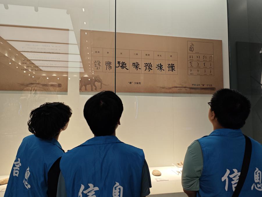 活动伊始,队员们怀着对文明根脉的敬畏与好奇,走进郑州市博物馆 “大河文明” 专题展厅。展厅内,仰韶彩陶的斑斓纹路、龙山黑陶的古朴质感与裴李岗文化的磨制石器静静陈列,瞬间将众人拉回黄河流域文明勃兴的远古时代。大家沿着展线缓缓前行,目光时而停留在描绘黄河流域先民劳作的场景复原图上,探寻黄河作为 “母亲河” 孕育早期文明的轨迹;时而驻足于刻有古 “豫” 字的甲骨复制品前,在讲解员的指引下,追溯这个承载着河南地域记忆的文字从 “象居之域” 的本义到成为中原代称的演变密码。