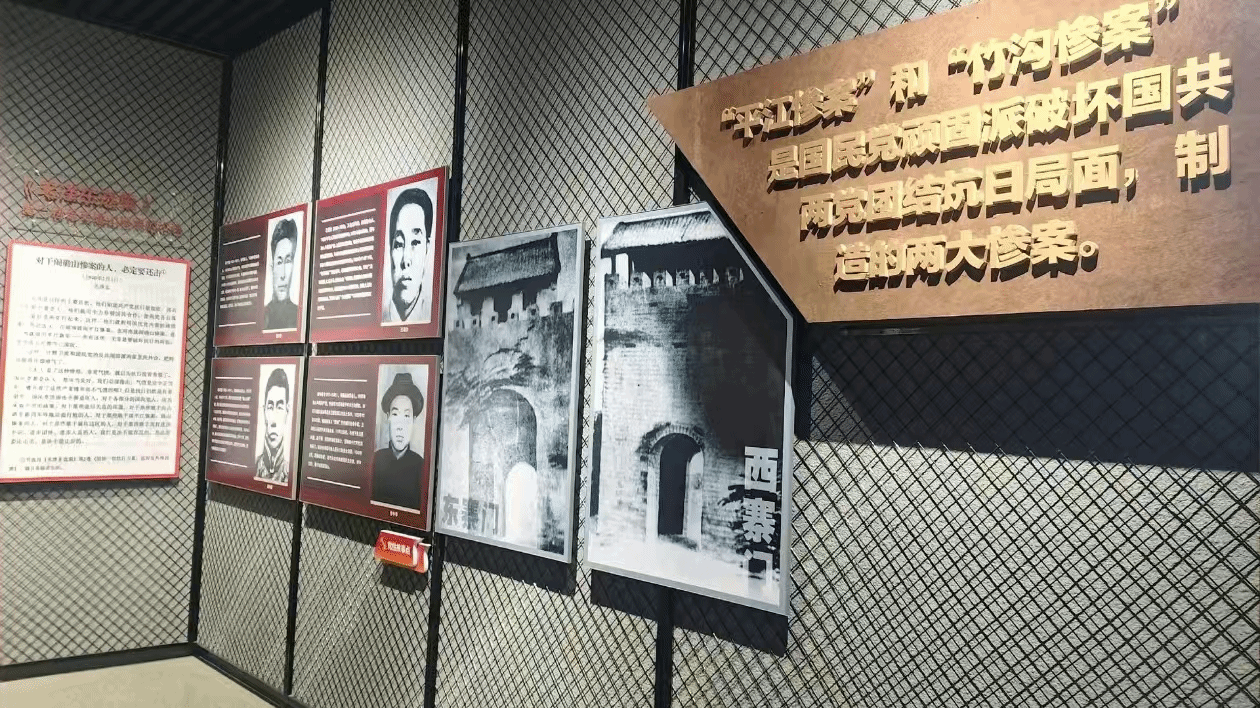 接着团队走进了“平江惨案”与“竹沟惨案”展厅。展厅内,一幅幅历史图片、一段段文字介绍,生动展现了曾经的悲壮历史。“华江案”和“竹沟惨案”等史实,是国民党顽固派破坏国共合作、制造的惨案,让人义愤填膺。通过这次参观,团队成员深受触动,对那段艰苦卓绝的岁月有了更深刻的认识。队员们纷纷表示,要铭记历史,传承和弘扬革命先辈的精神,在新时代担当作为,为实现中华民族伟大复兴贡献自己的力量。