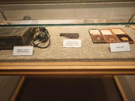 图3 展柜文物陈列 图4 队员在学习史料