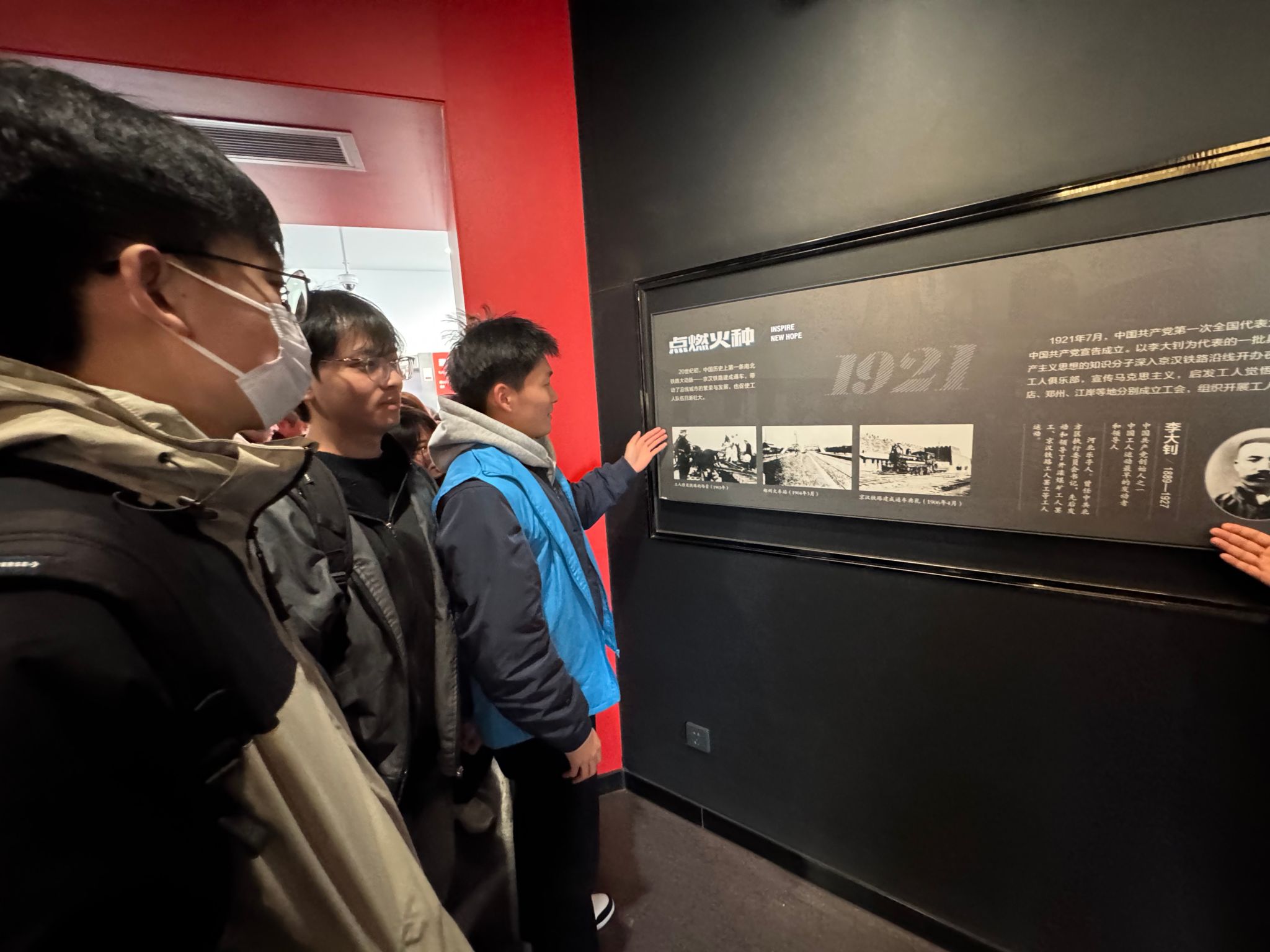 图二 队员们聆听讲解员介绍二七大罢工历史